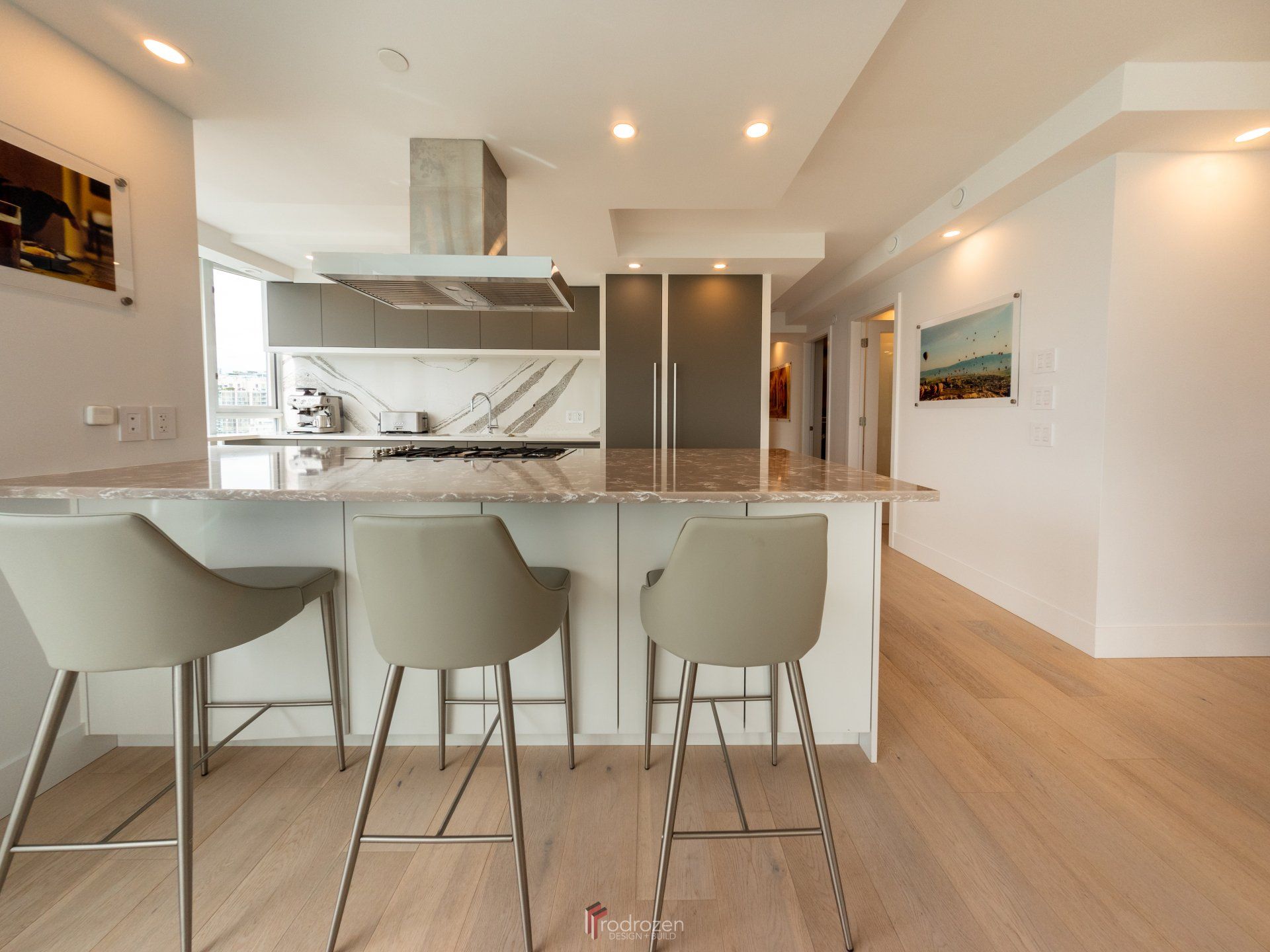 We are delighted to share that our award-nominated interior design project involved a stunning transformation of a three-bedroom condo. Our goal was to future-proof the space for a growing family while maximizing the living area and capturing the breathtaking view of Yaletown and the marina.