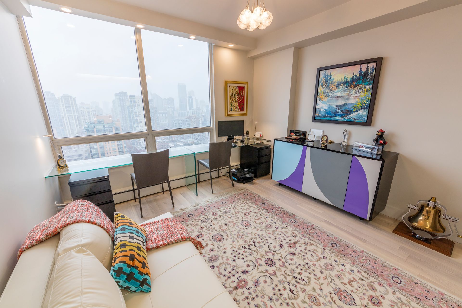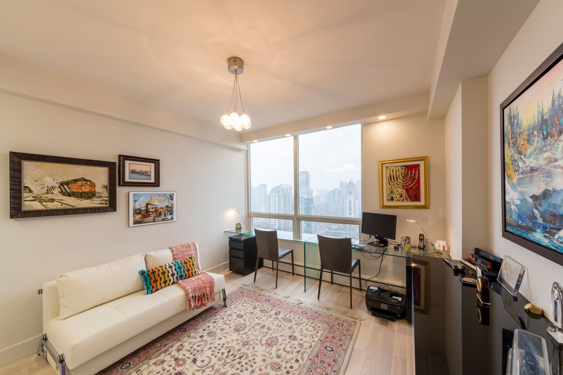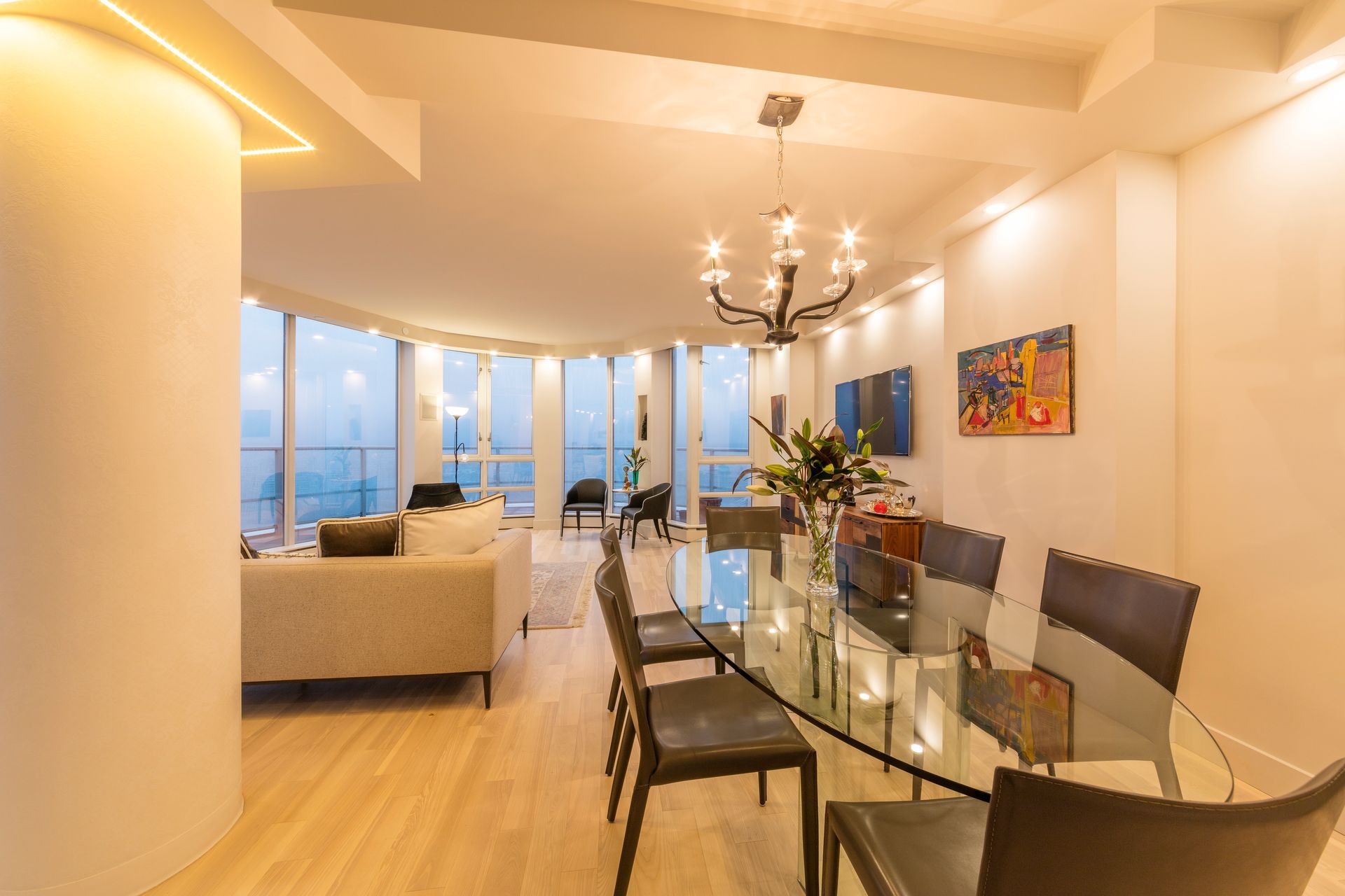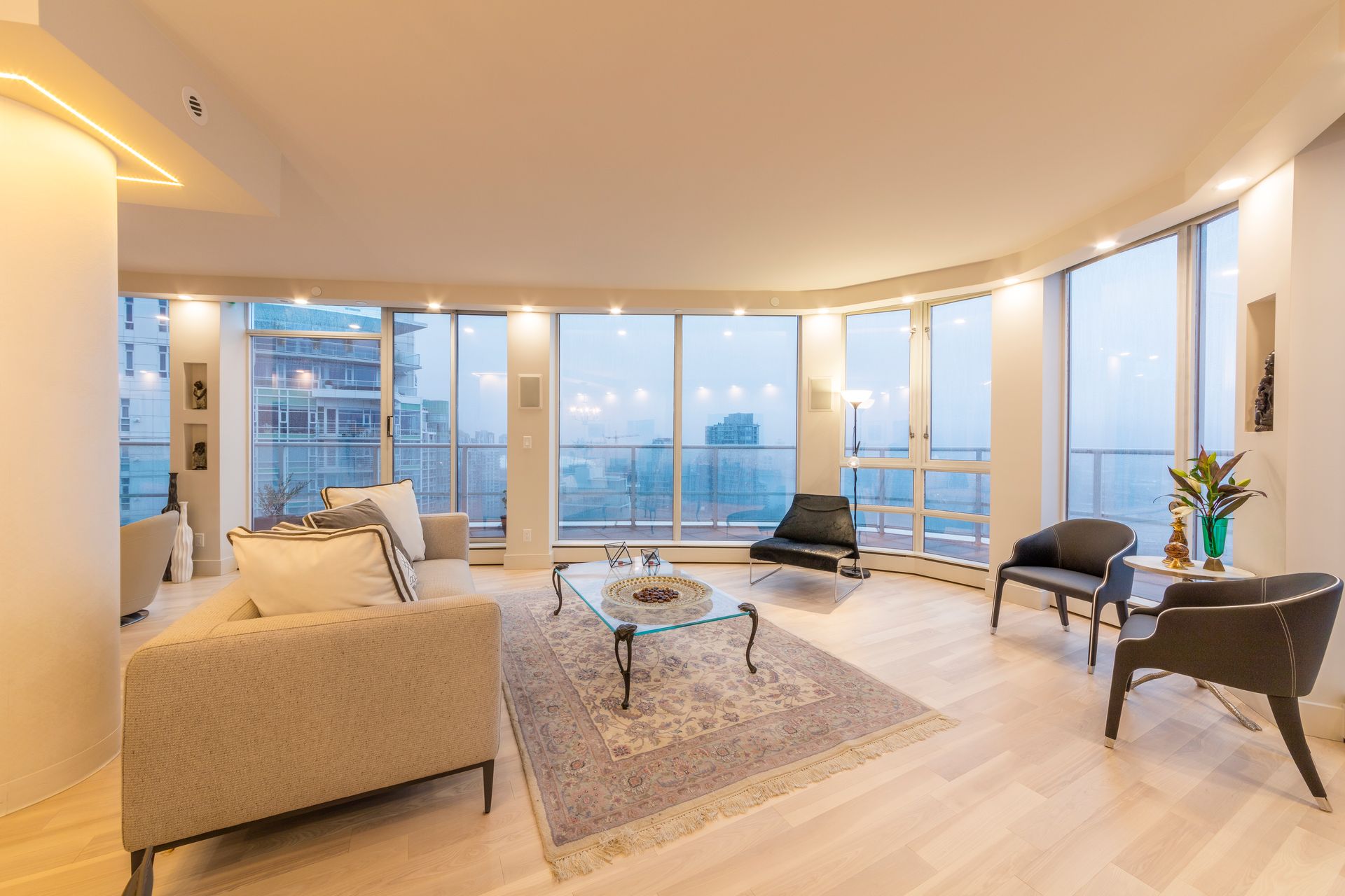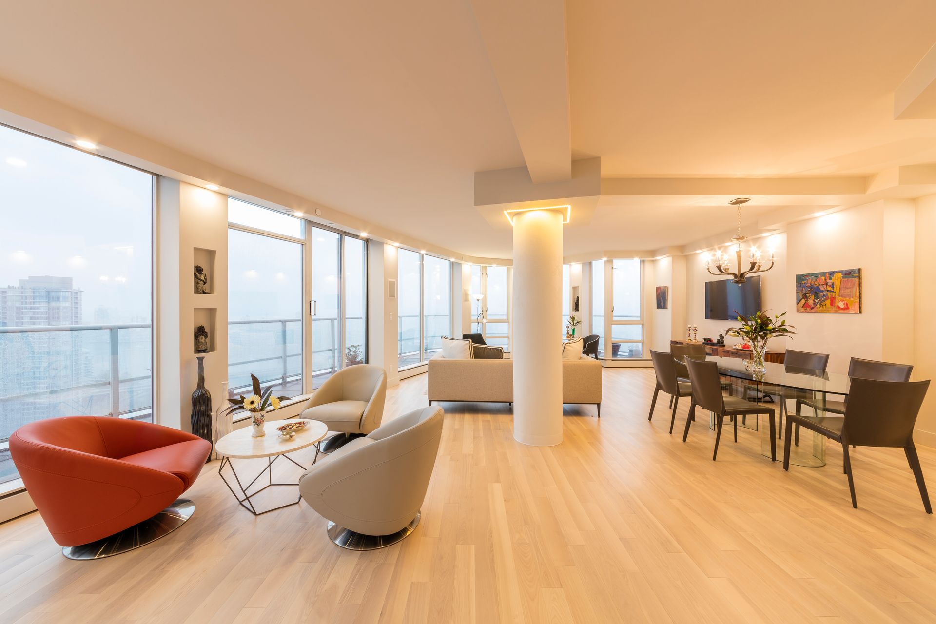 We converted the kitchen from a closed-in U shaped to an open island-style kitchen while maintaining a large kitchen nook area for food storage and preparation. The ensuite bathroom is by far the stand-out feature here. We moved the bathtub to sit directly in front of the beautiful view of Vancouver. While the black granite raised sink and the Times Square faucet makes a splash.