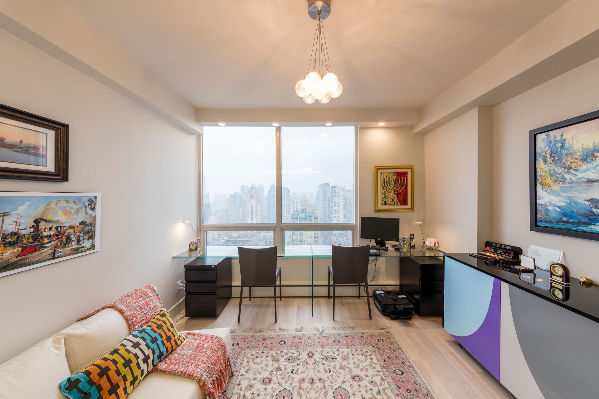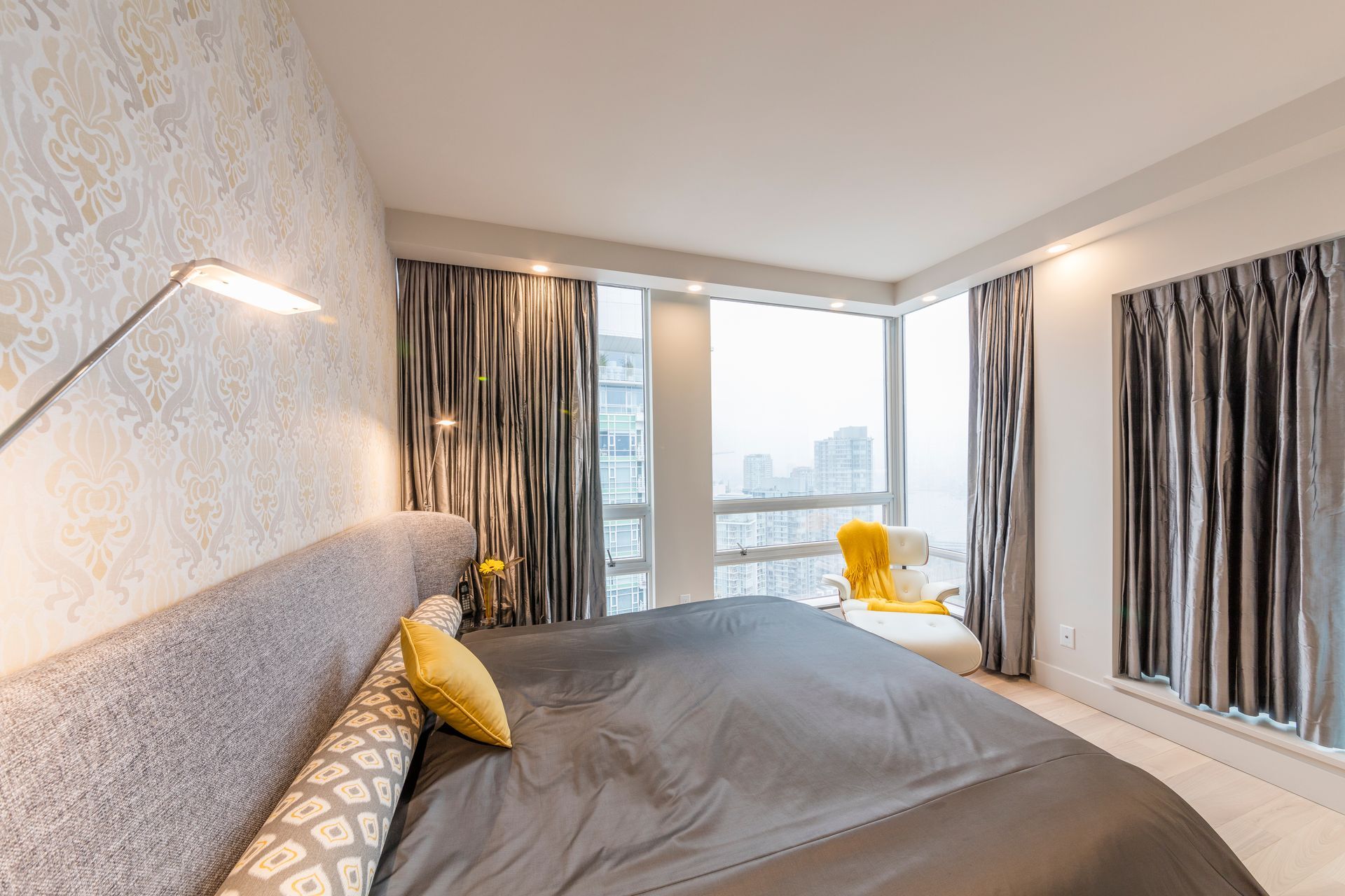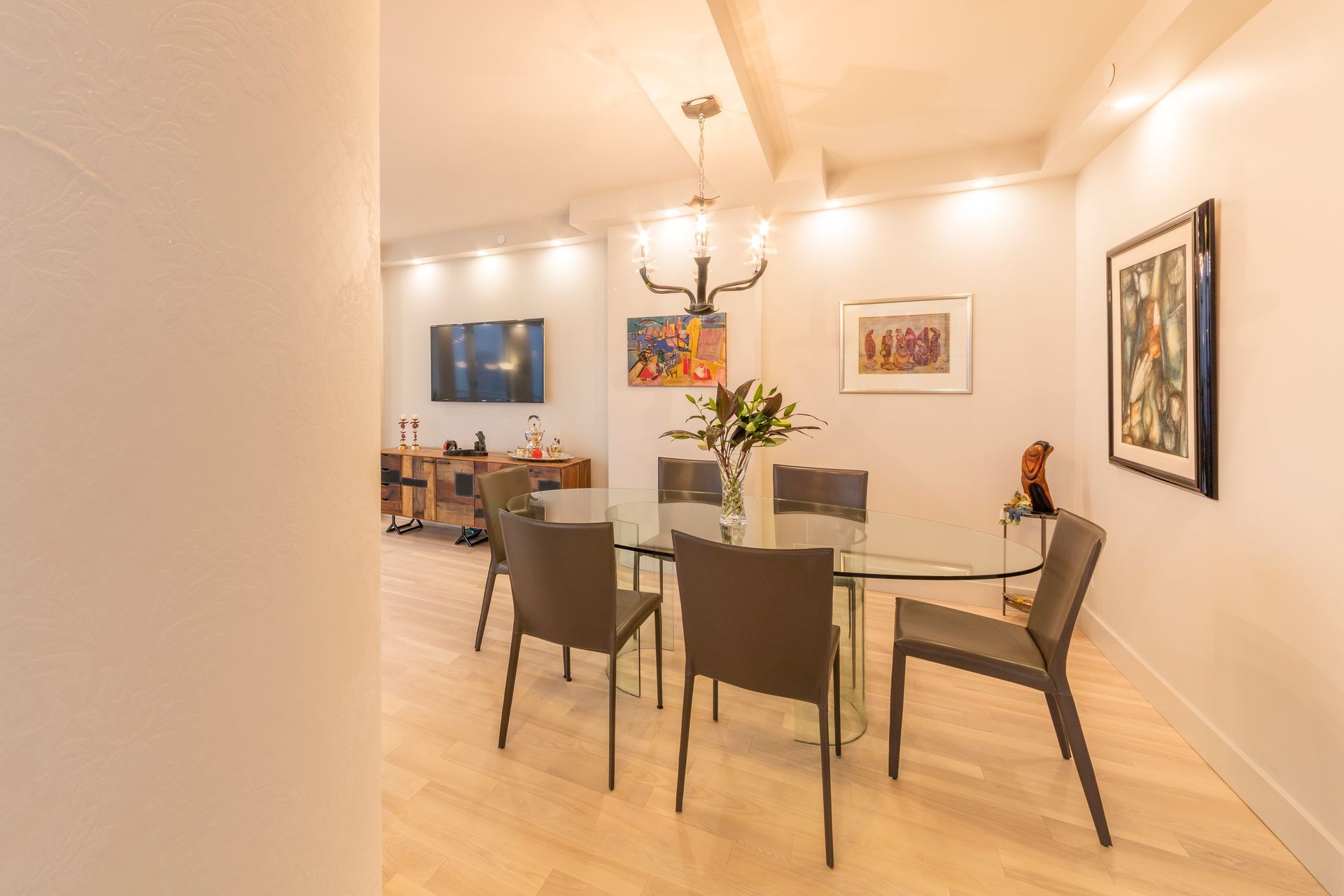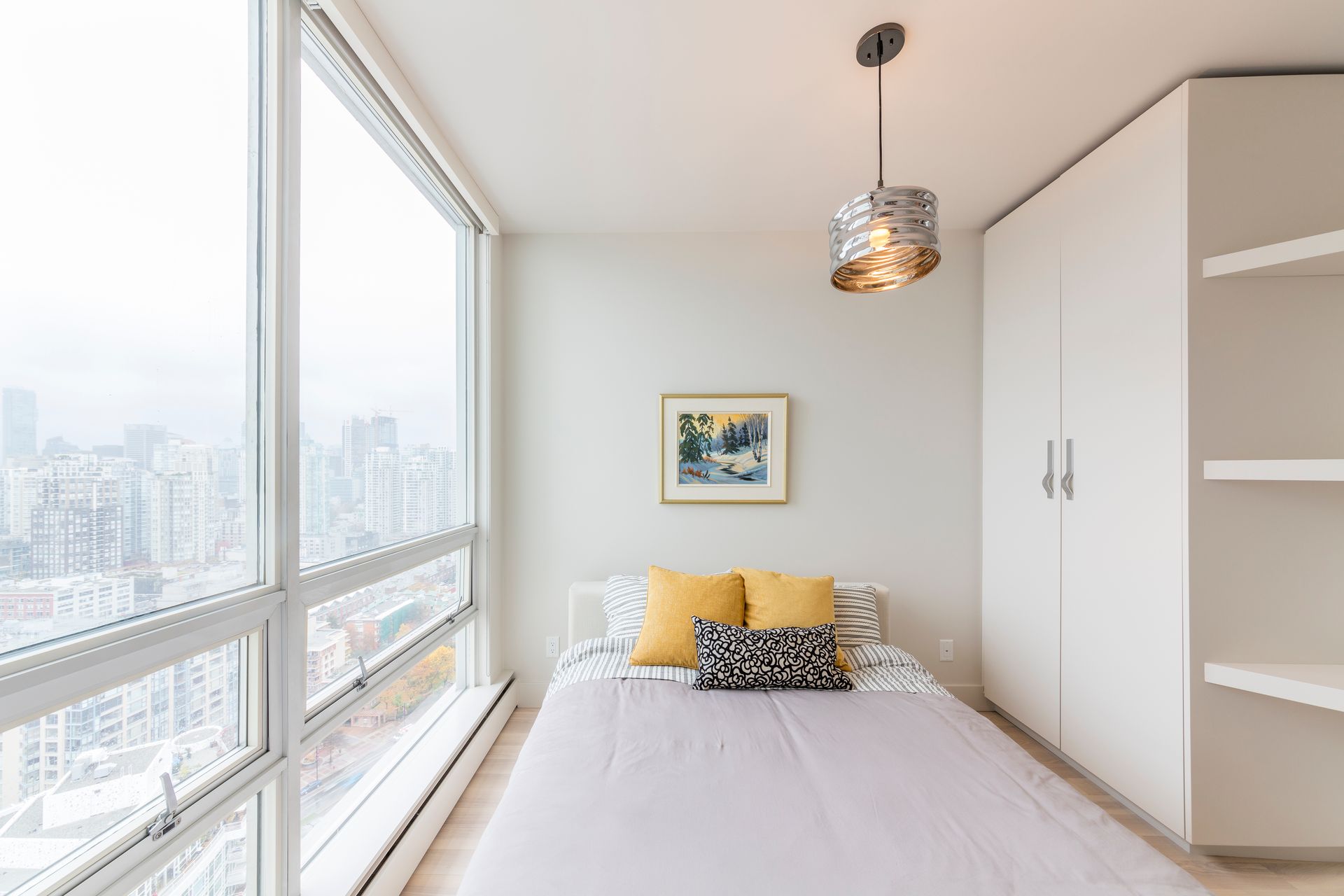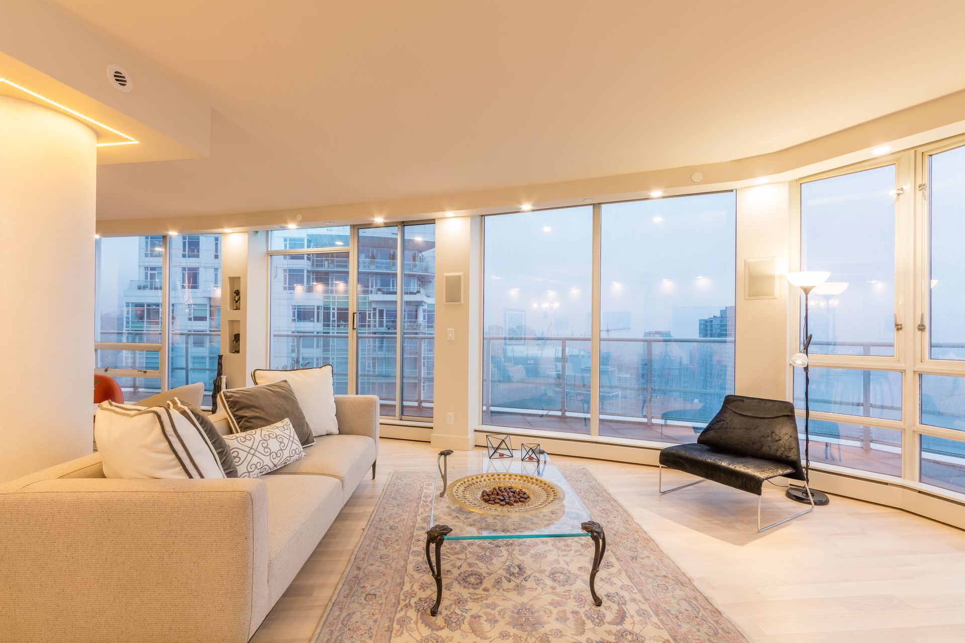We converted the kitchen from a closed-in U shaped to an open island-style kitchen while maintaining a large kitchen nook area for food storage and preparation. The ensuite bathroom is by far the stand-out feature here. We moved the bathtub to sit directly in front of the beautiful view of Vancouver. While the black granite raised sink and the Times Square faucet makes a splash.