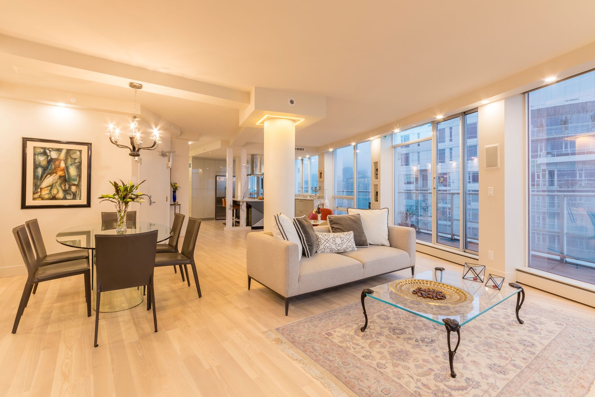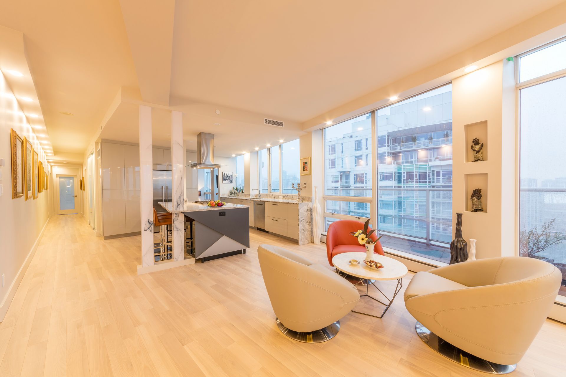The materials used are in keeping with the function and styles of today's Vancouver condo living with engineered wood flooring, Cambria quartz kitchen countertops and an extensive millwork package.