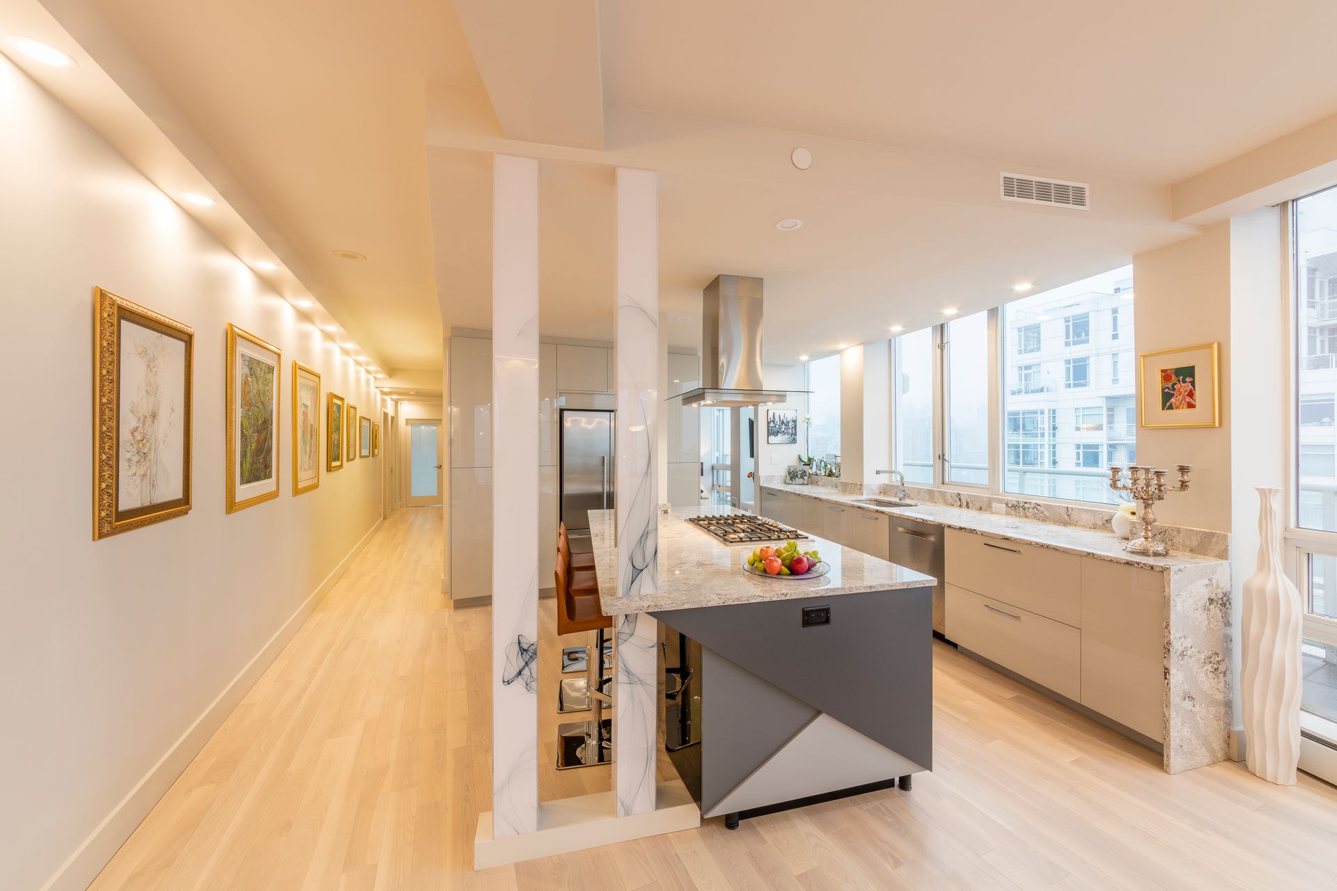 are in keeping with the function and styles of today's Vancouver condo living with engineered wood flooring, Cambria quartz kitchen countertops and an extensive millwork package.