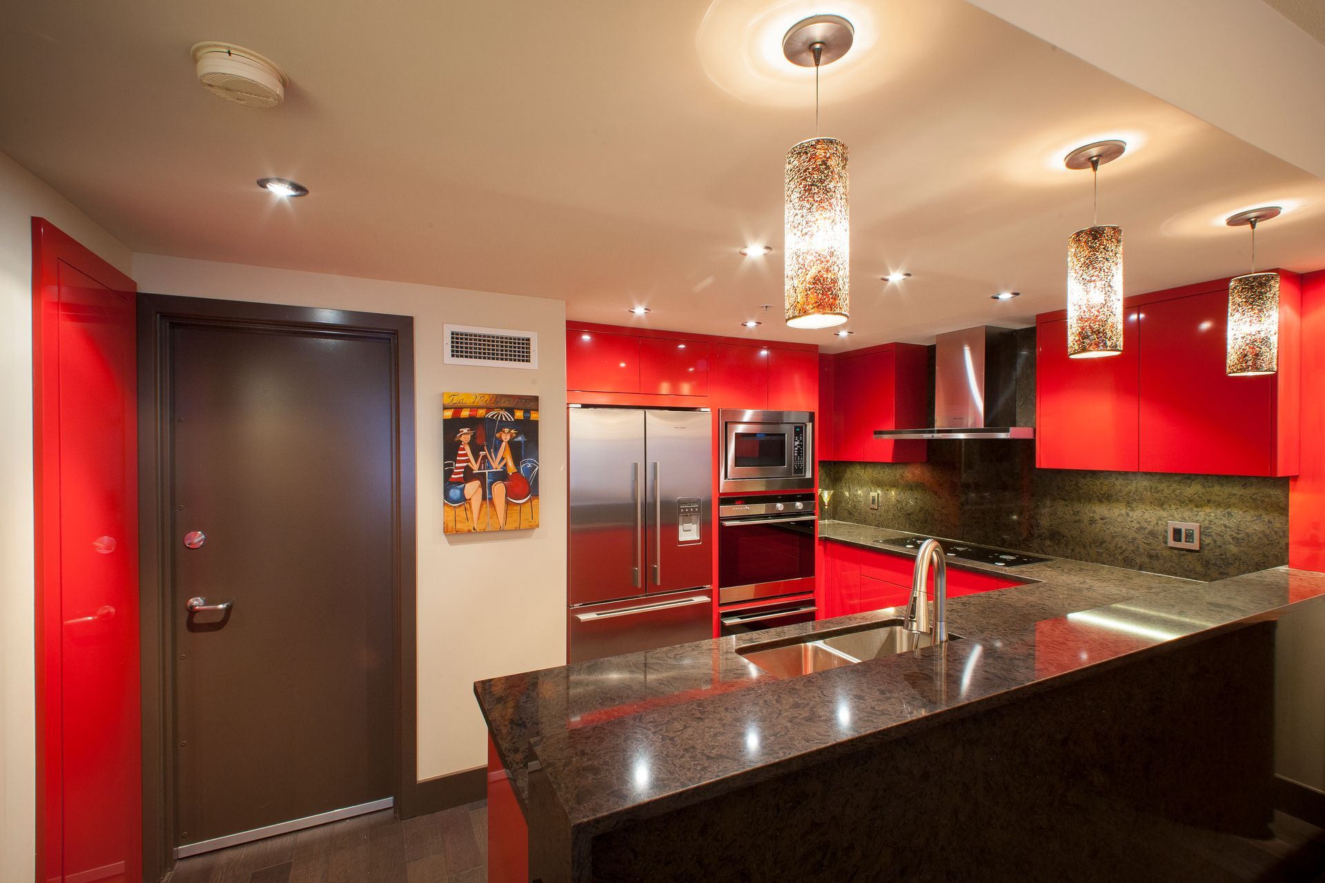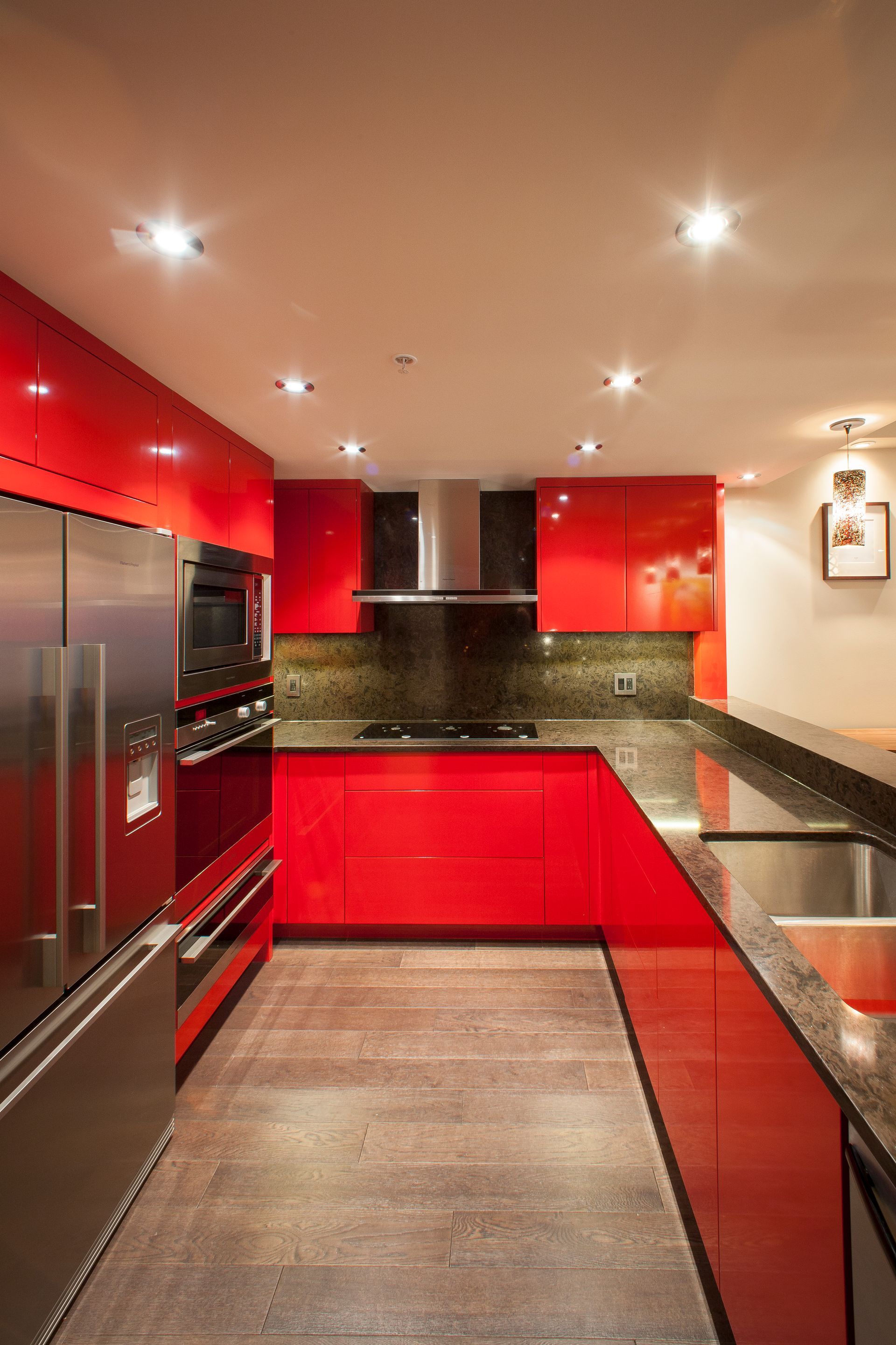 Three floors to make a townhouse dream come true! Let Rodrozen Design + Build create an abundant home that drips with design. And the devil is certainly in the details in this incredible home in Coal Harbour in downtown Vancouver. We designed the top floor to be the ultimate penthouse style with an open plan master bedroom with a walk-in wardrobe, master bathroom and plenty of relaxing space. The middle level continues a similar theme, including laundry and utility space. Meanwhile, the lower floor gets the goods of a beautiful red kitchen and moody living space. This one is unique!