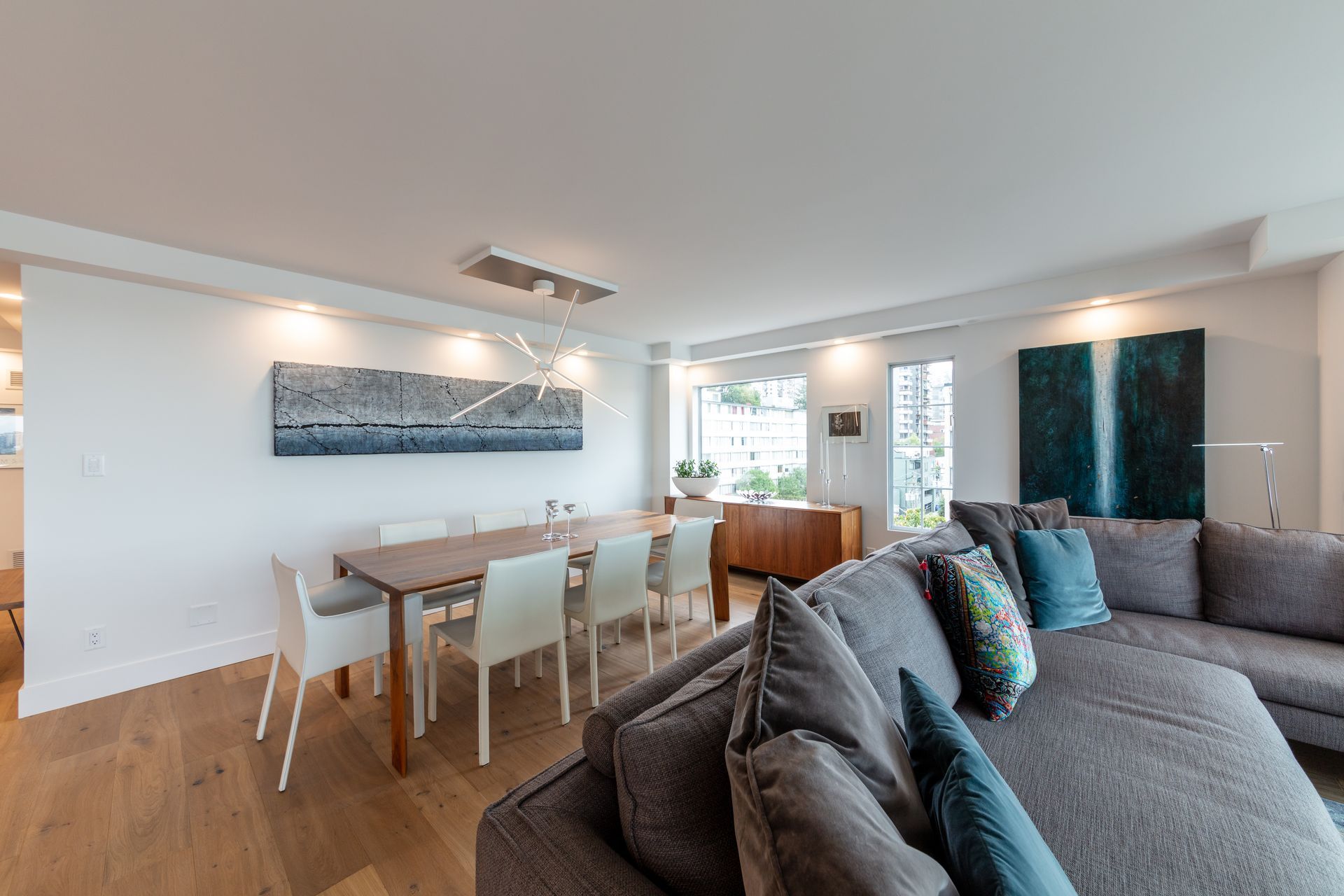 Another of our stunning condo renovation in English Bay, Vancouver that was recognized by our peers for its design and build success. This modern living space boasts an open-plan design that maximizes natural light and creates a spacious and welcoming feel. The contemporary design elements throughout the condo perfectly complement the gorgeous views of English Bay and the ocean.