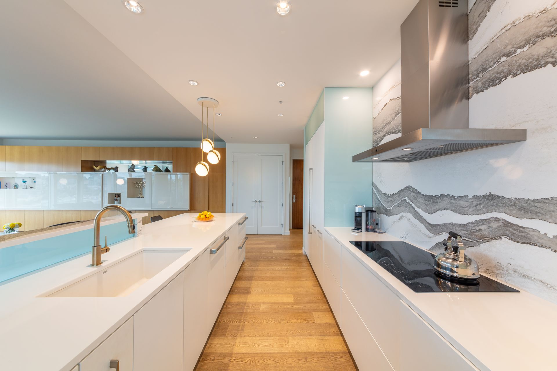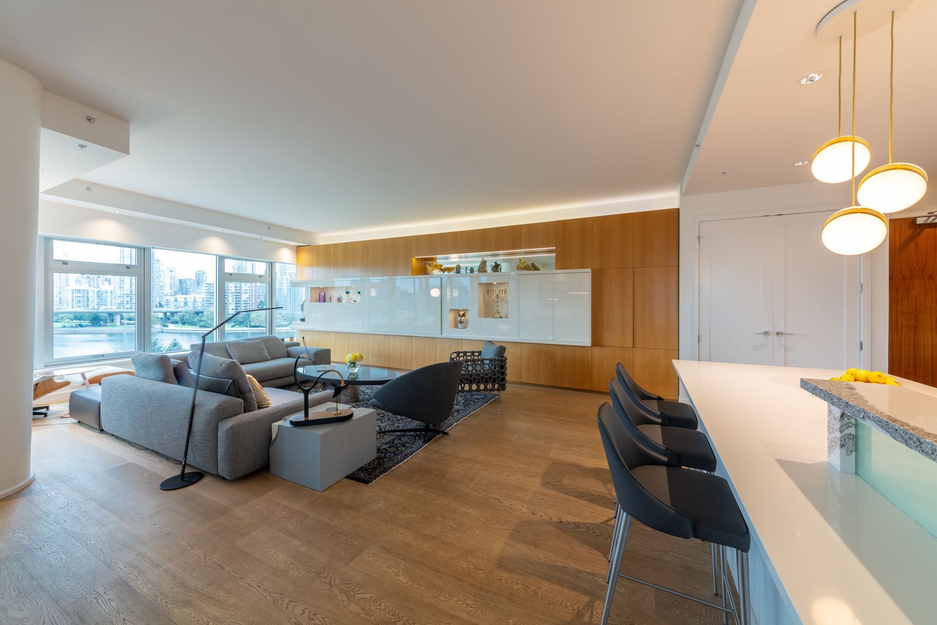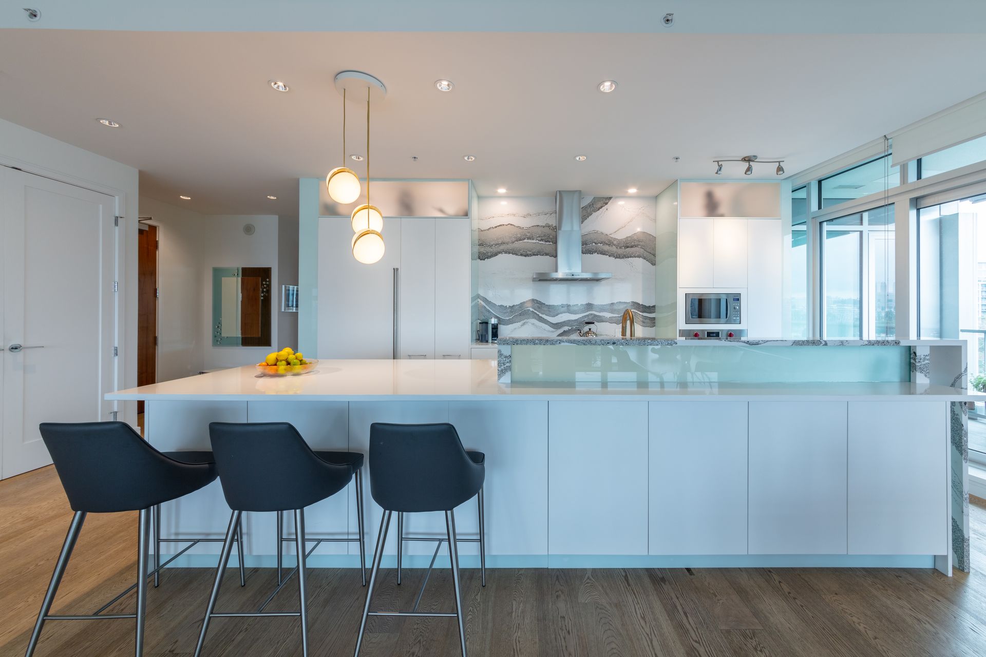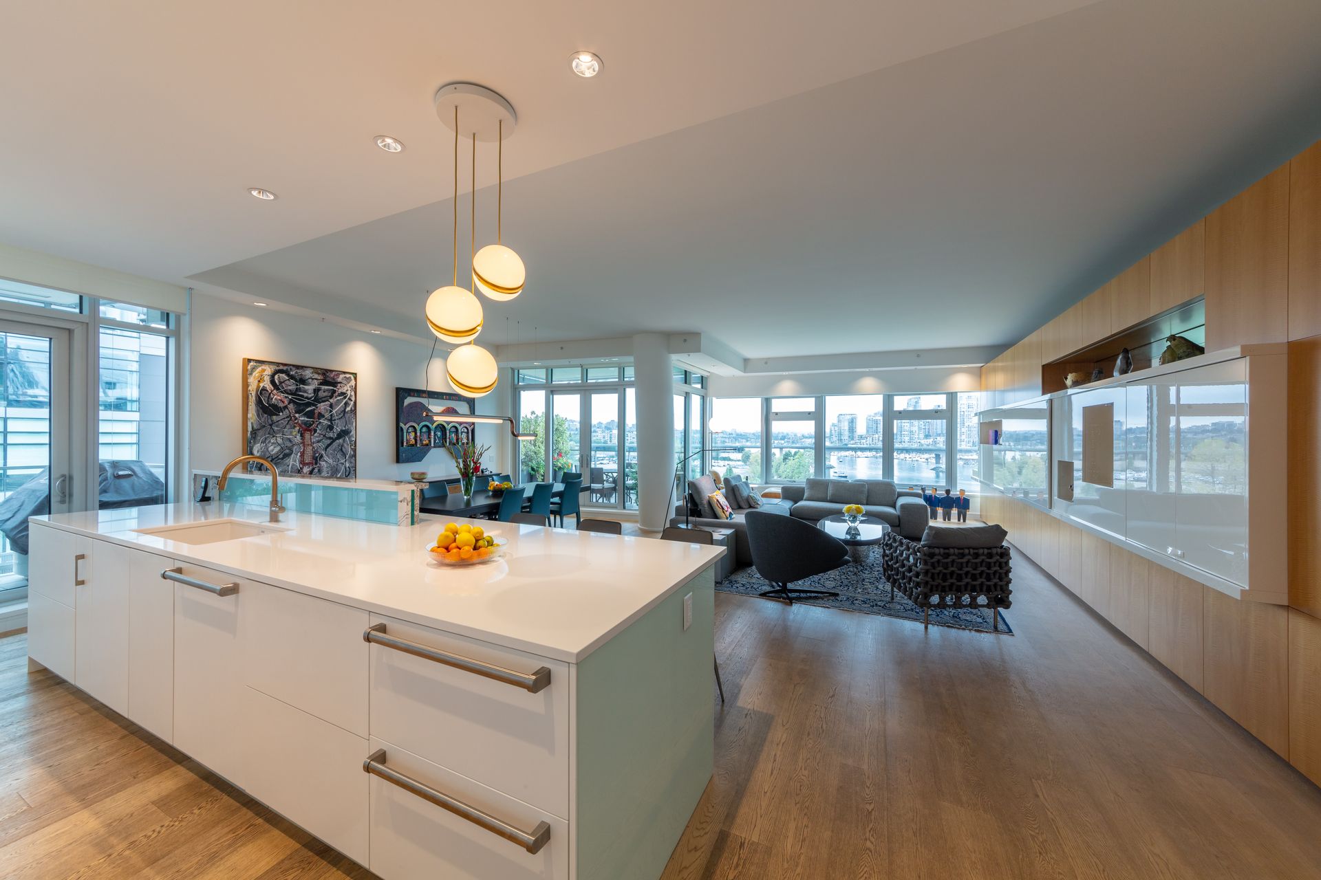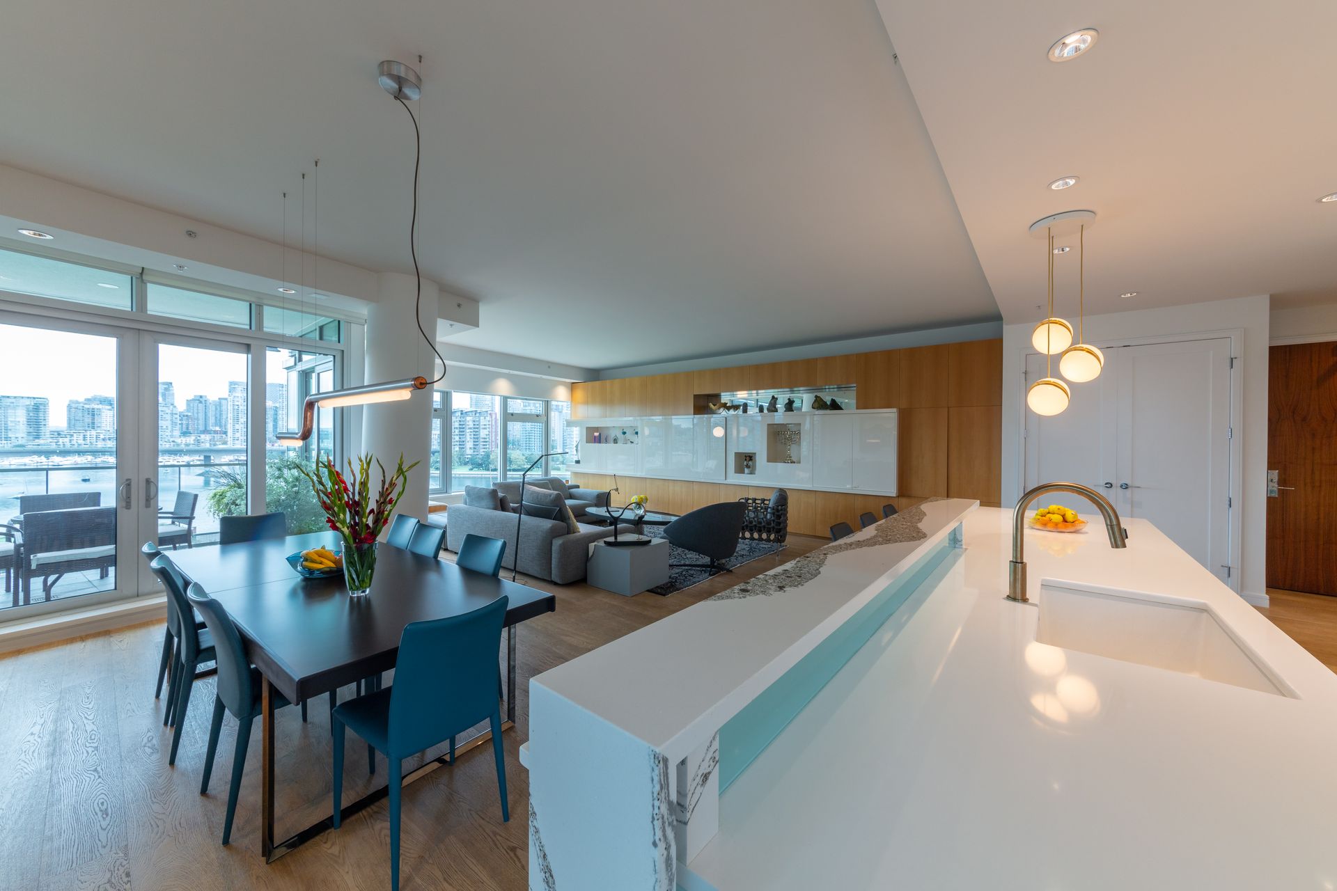 Welcome to this stunning 2100 sq ft condo we renovated in Athletes Way in the Olympic Village in Vancouver. This condo boasts breathtaking views over False Creek, creating a serene and relaxing atmosphere for its residents.