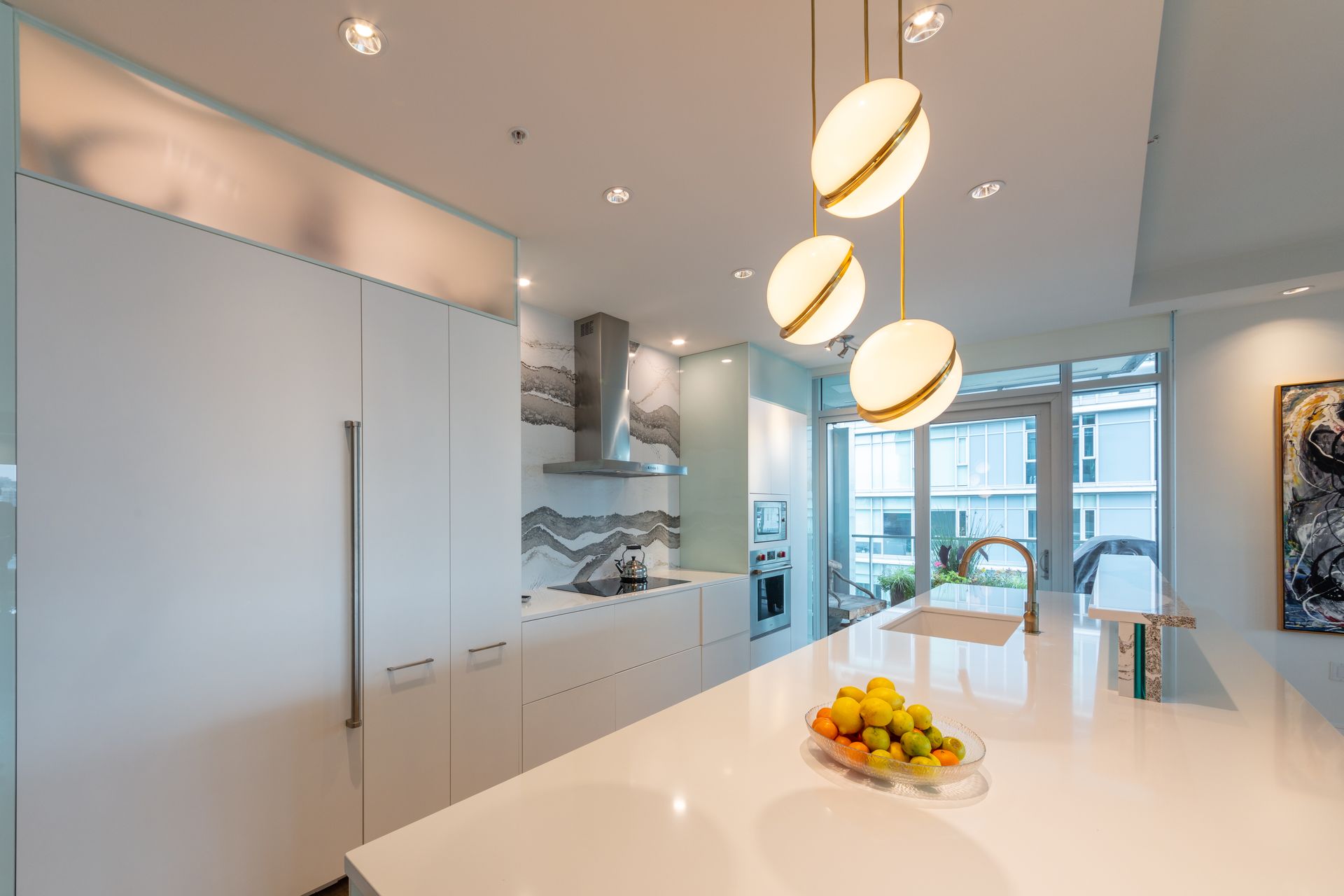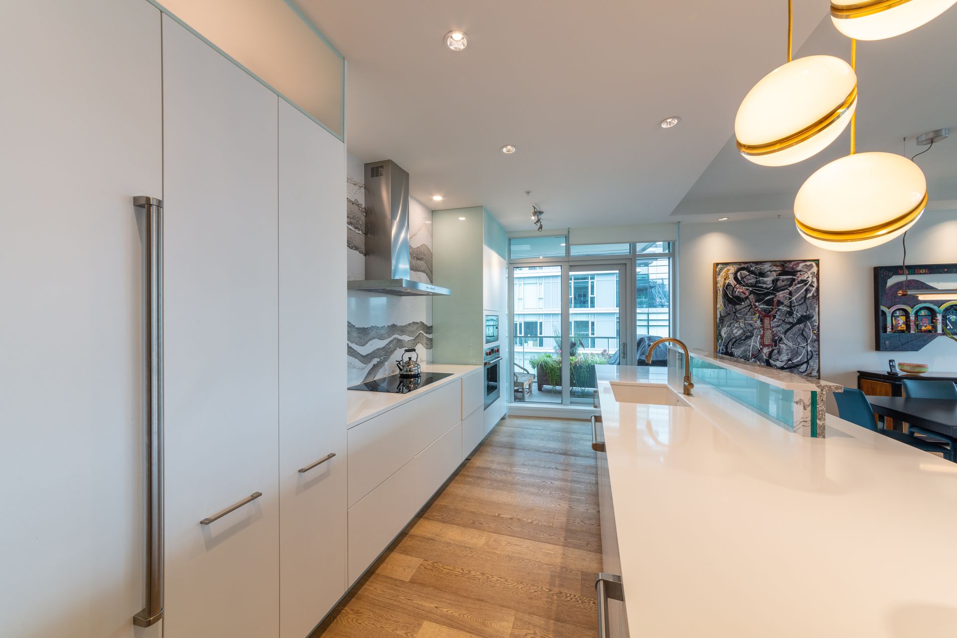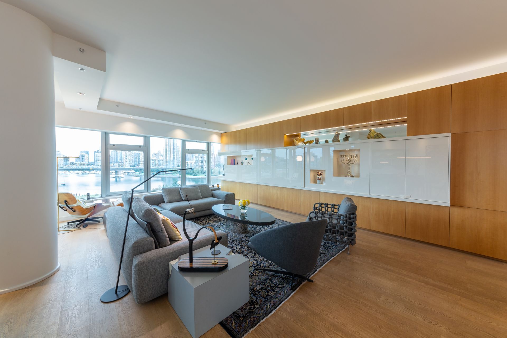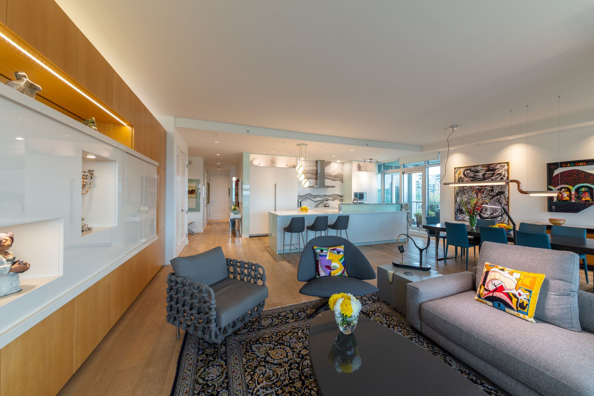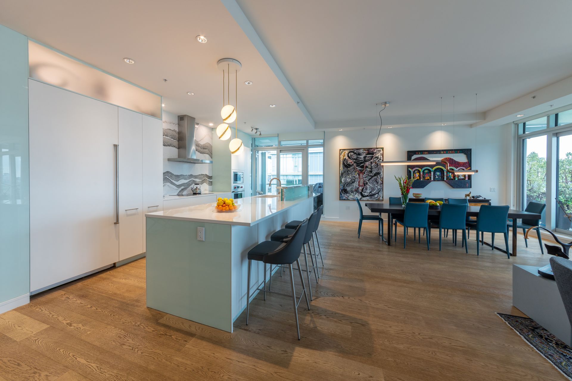 Welcome to this stunning 2100 sq ft condo we renovated in Athletes Way in the Olympic Village in Vancouver. This condo boasts breathtaking views over False Creek, creating a serene and relaxing atmosphere for its residents.