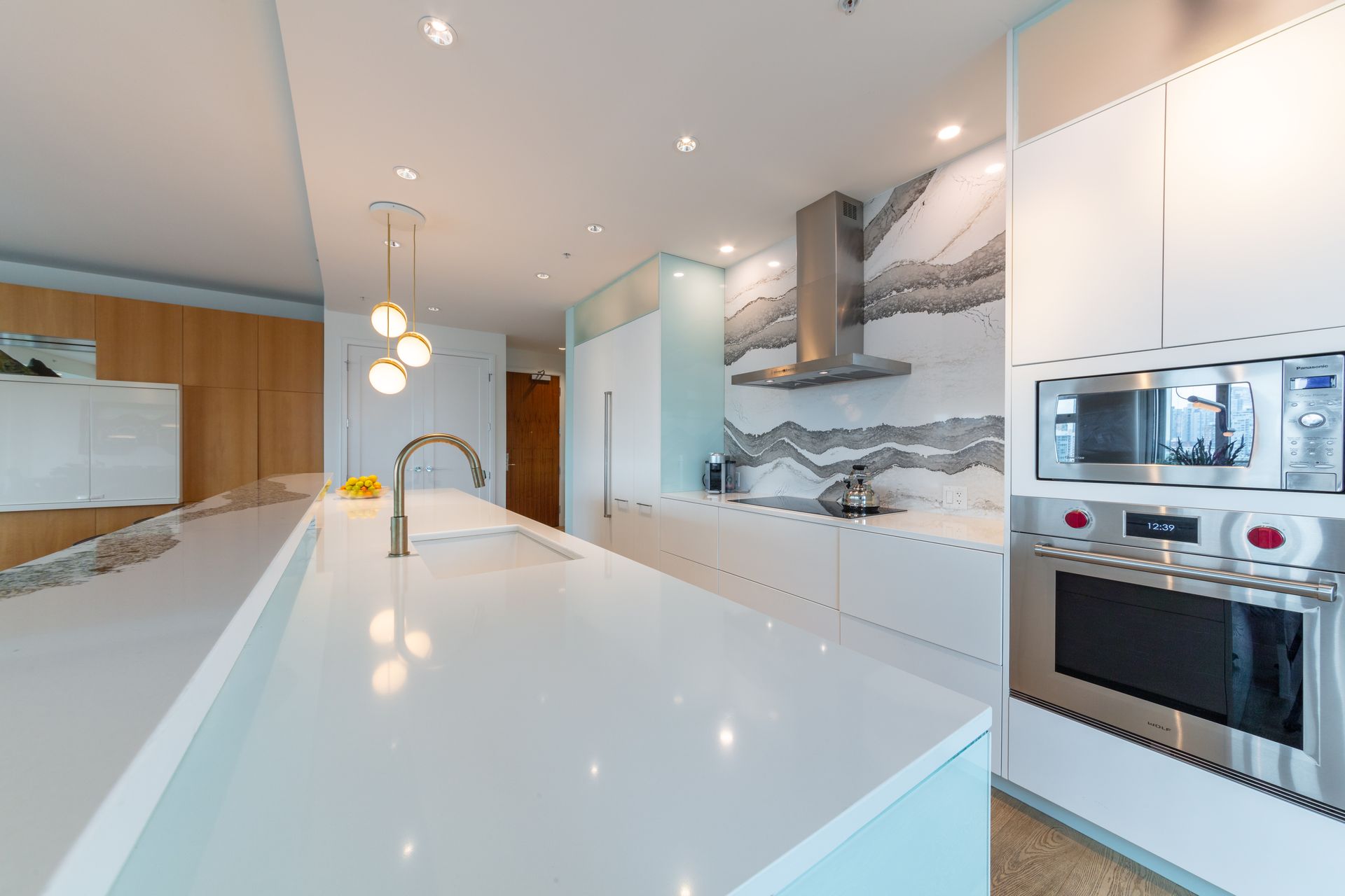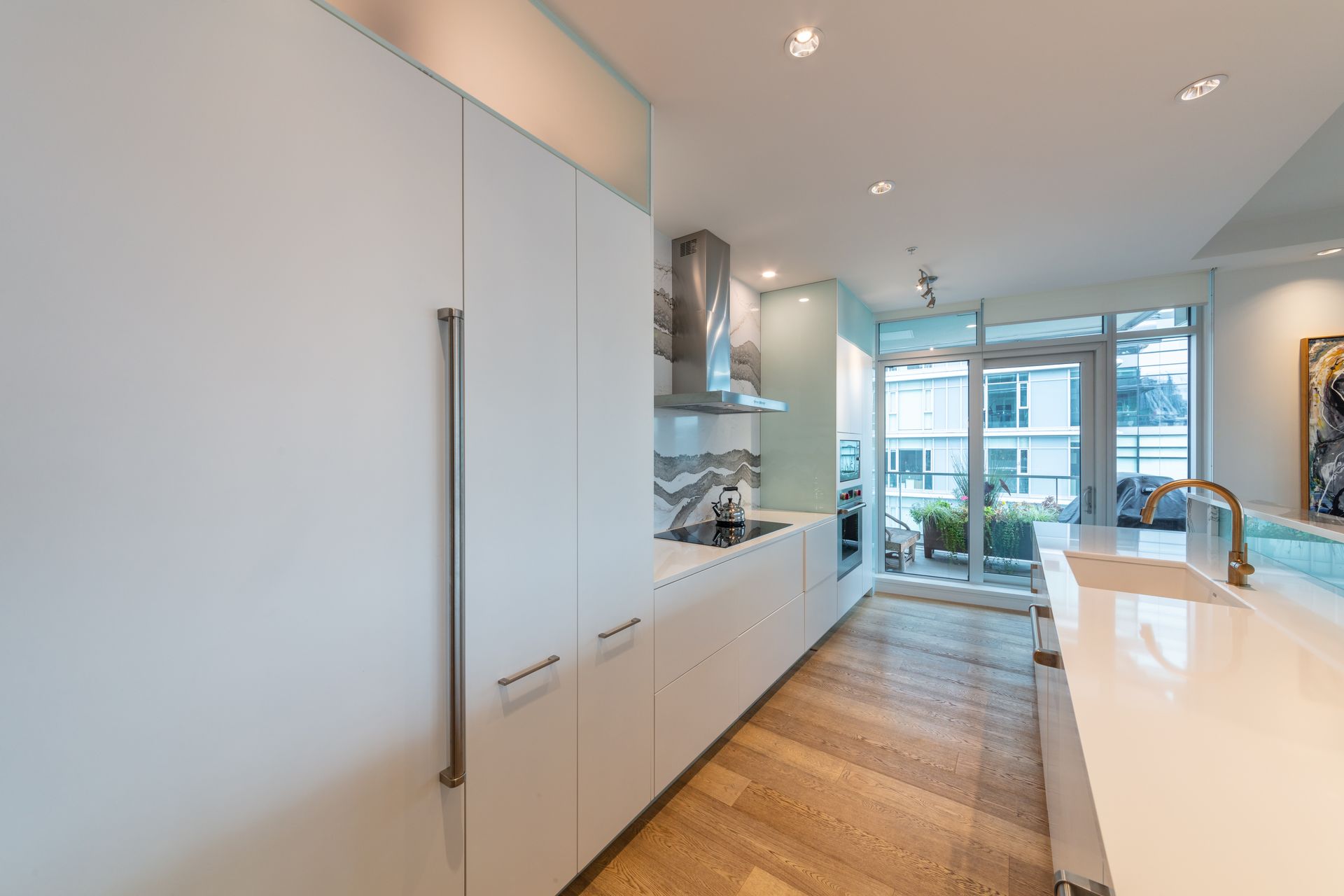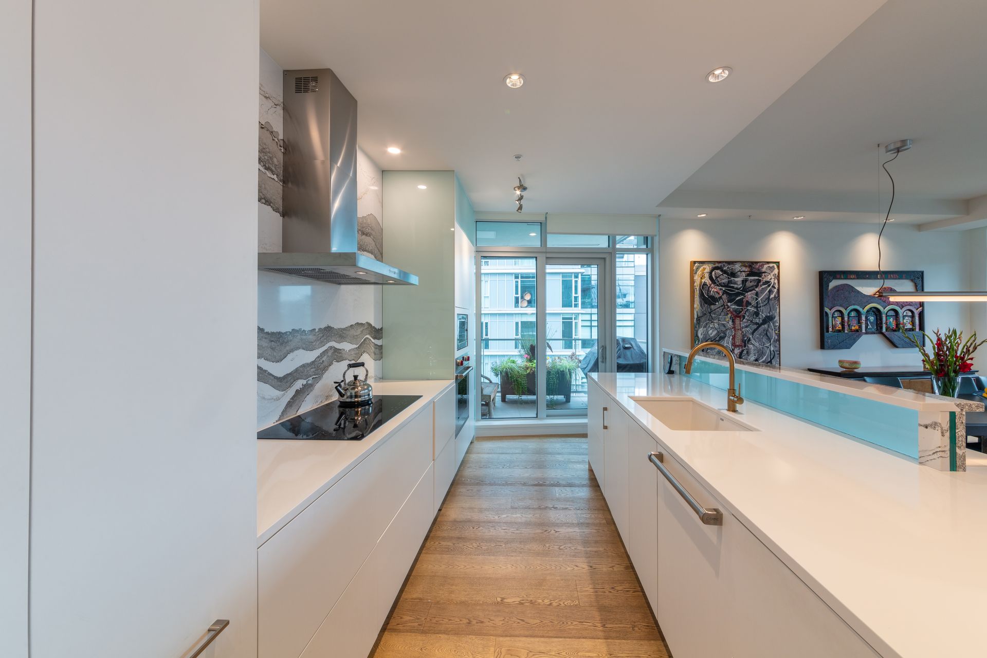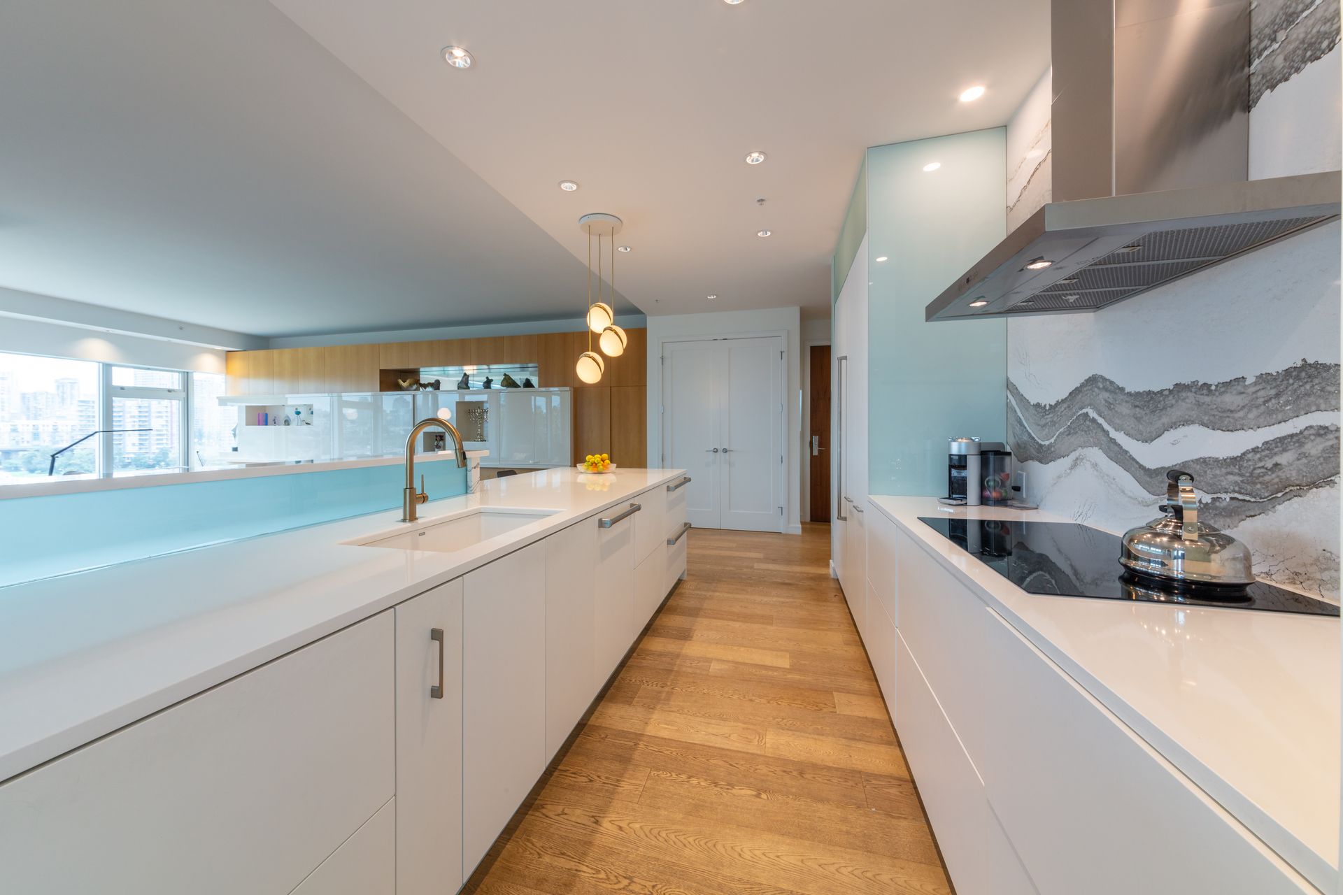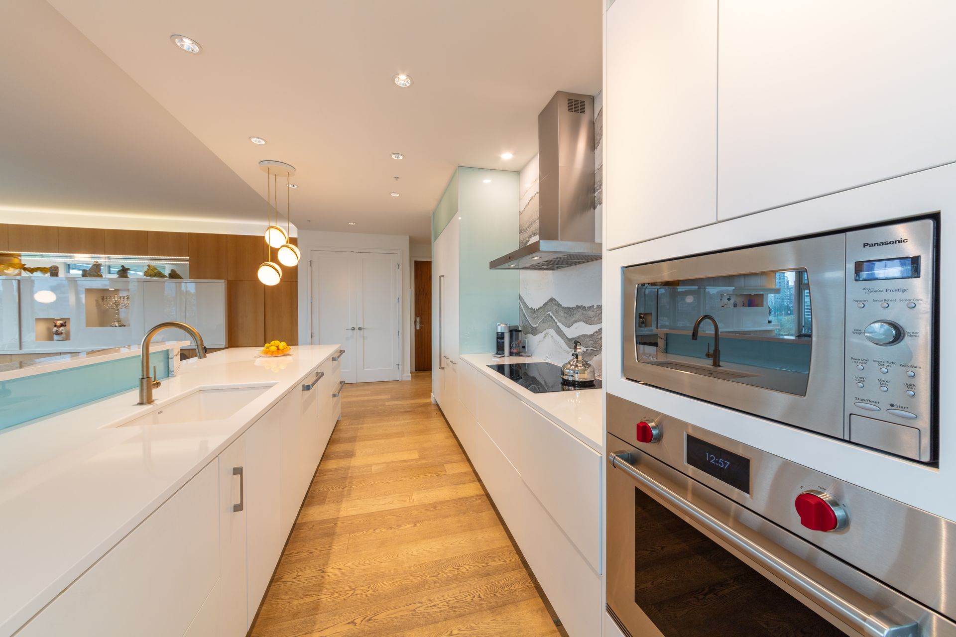 Welcome to this stunning 2100 sq ft condo we renovated in Athletes Way in the Olympic Village in Vancouver. This condo boasts breathtaking views over False Creek, creating a serene and relaxing atmosphere for its residents.