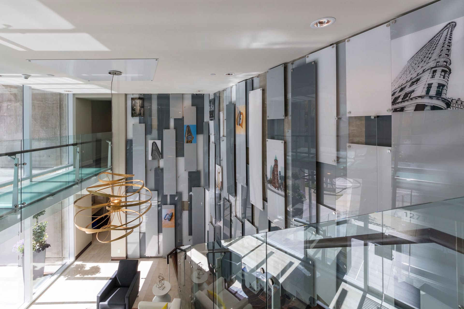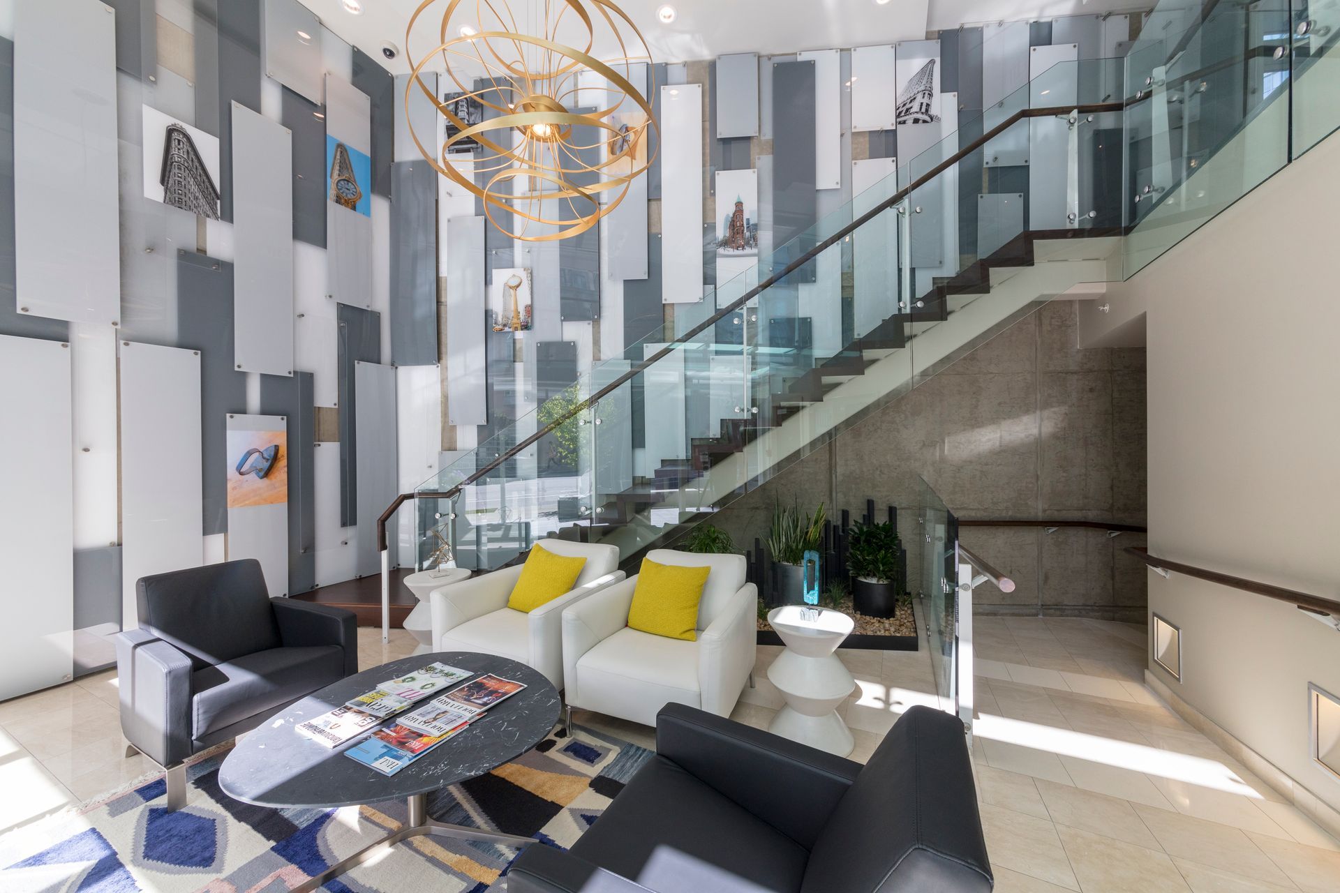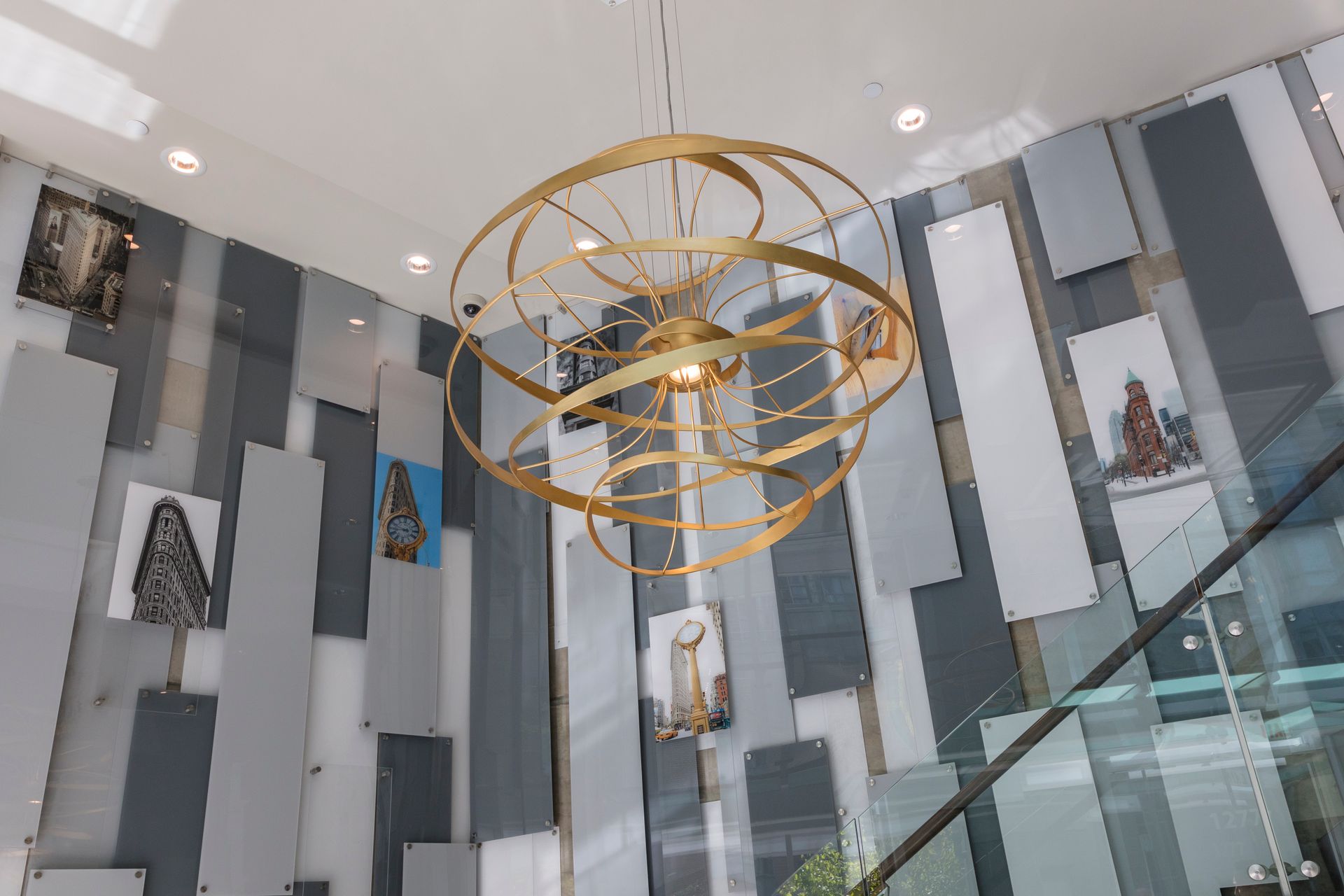 Our inspiration for this project came from the famous Flat Iron building in New York City and the surrounding commercial area. We created an industrial theme with metal elements throughout, and our primary design feature is using acrylic panels at various depths to create a stunning 3D effect on the walls. While still providing a relaxing and inviting social and waiting space for residents. We are proud to have been a part of transforming the lobby of the Flat Iron building into a modern and inviting space that residents and visitors alike can enjoy.