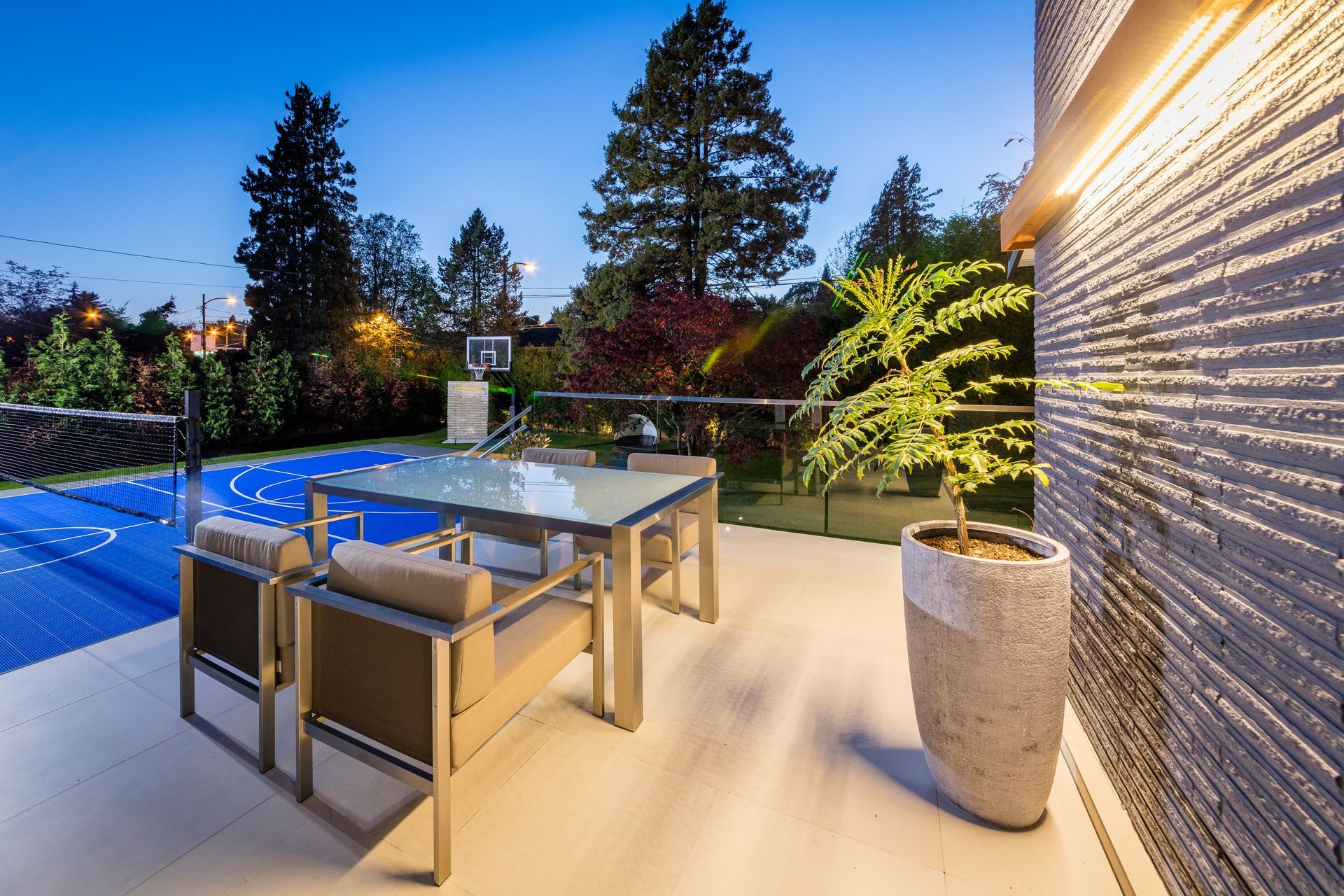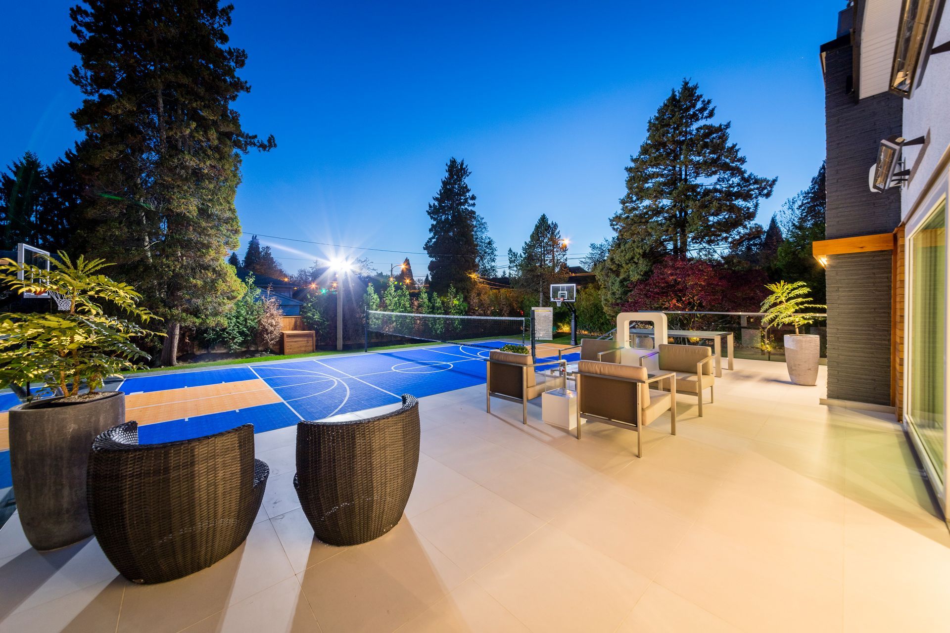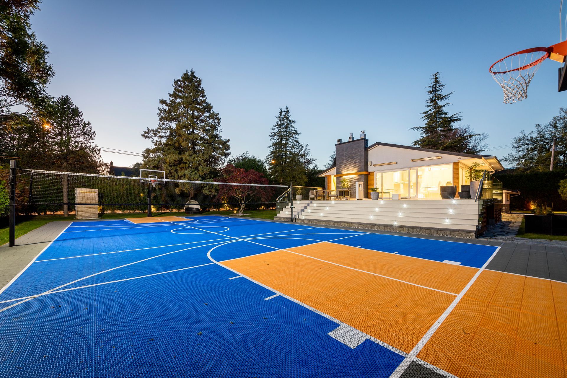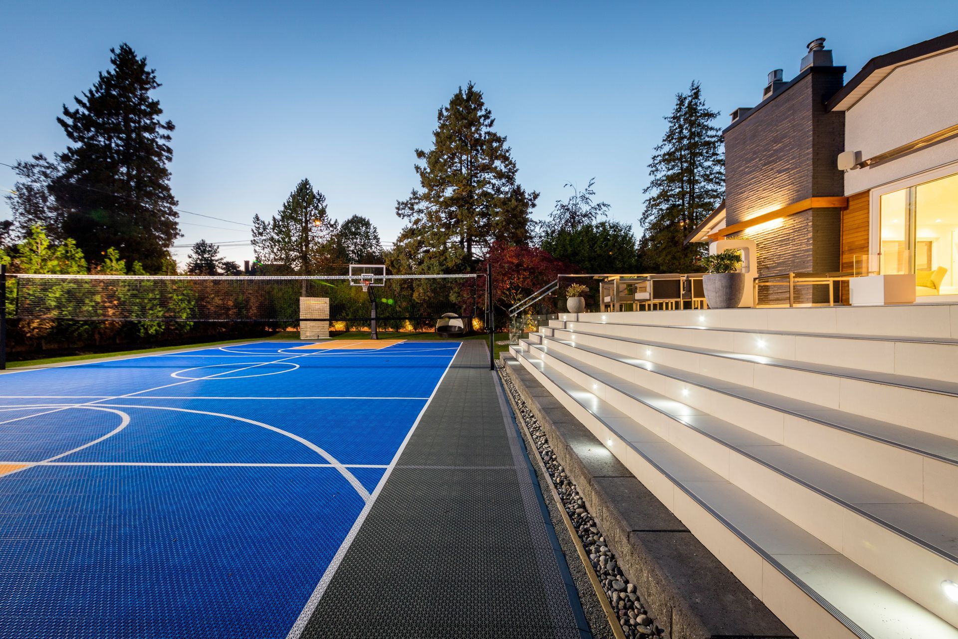 We built a large basement area for a sizable family and kid's playroom. Next, we designed this home to live in during summer with a large 750 sq ft deck and multi-sport court area facing the summer sun. Finally, we developed an entranceway to impress with a two-story 160 sq ft entry that we integrated into the home's existing structure.