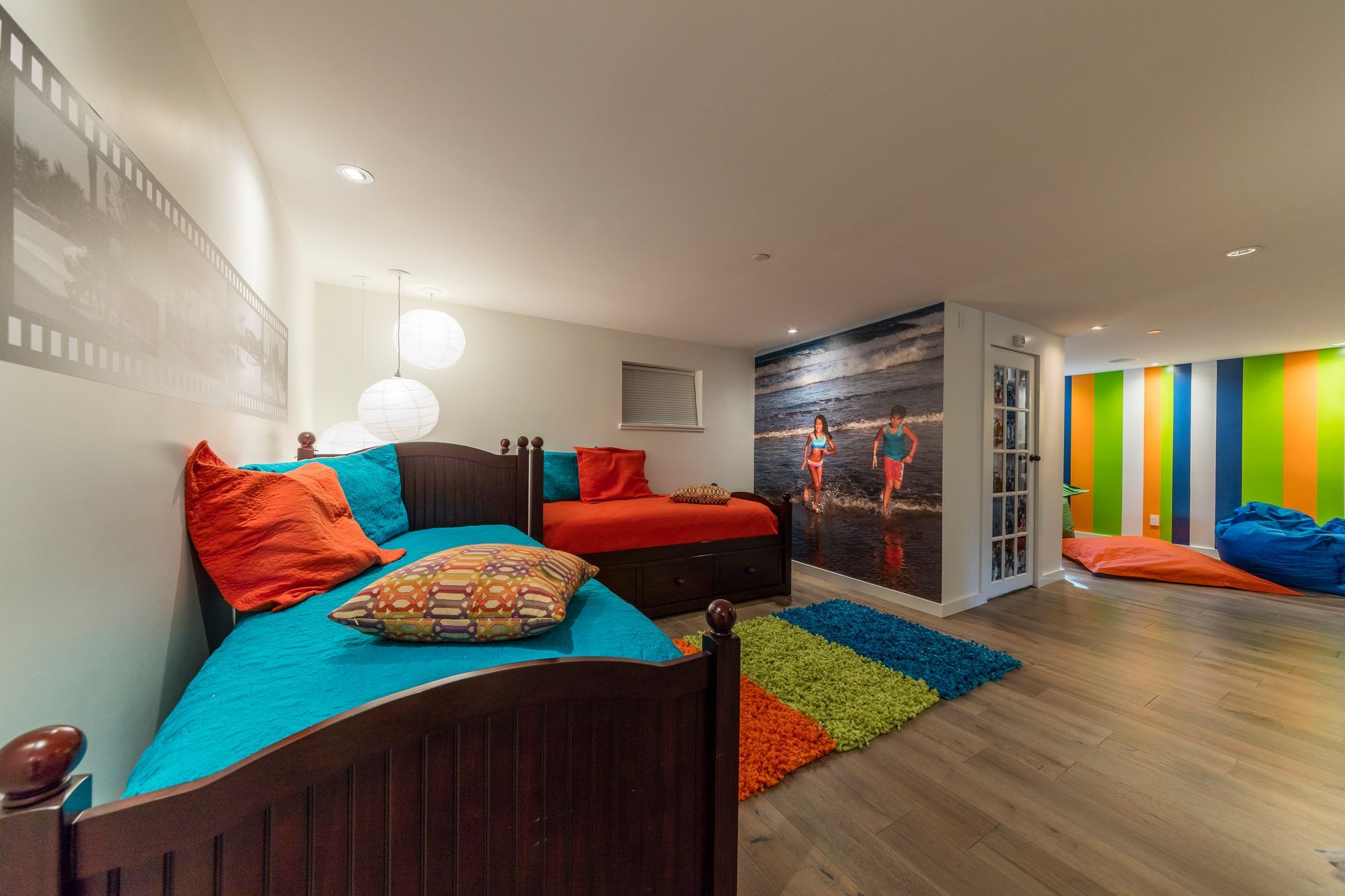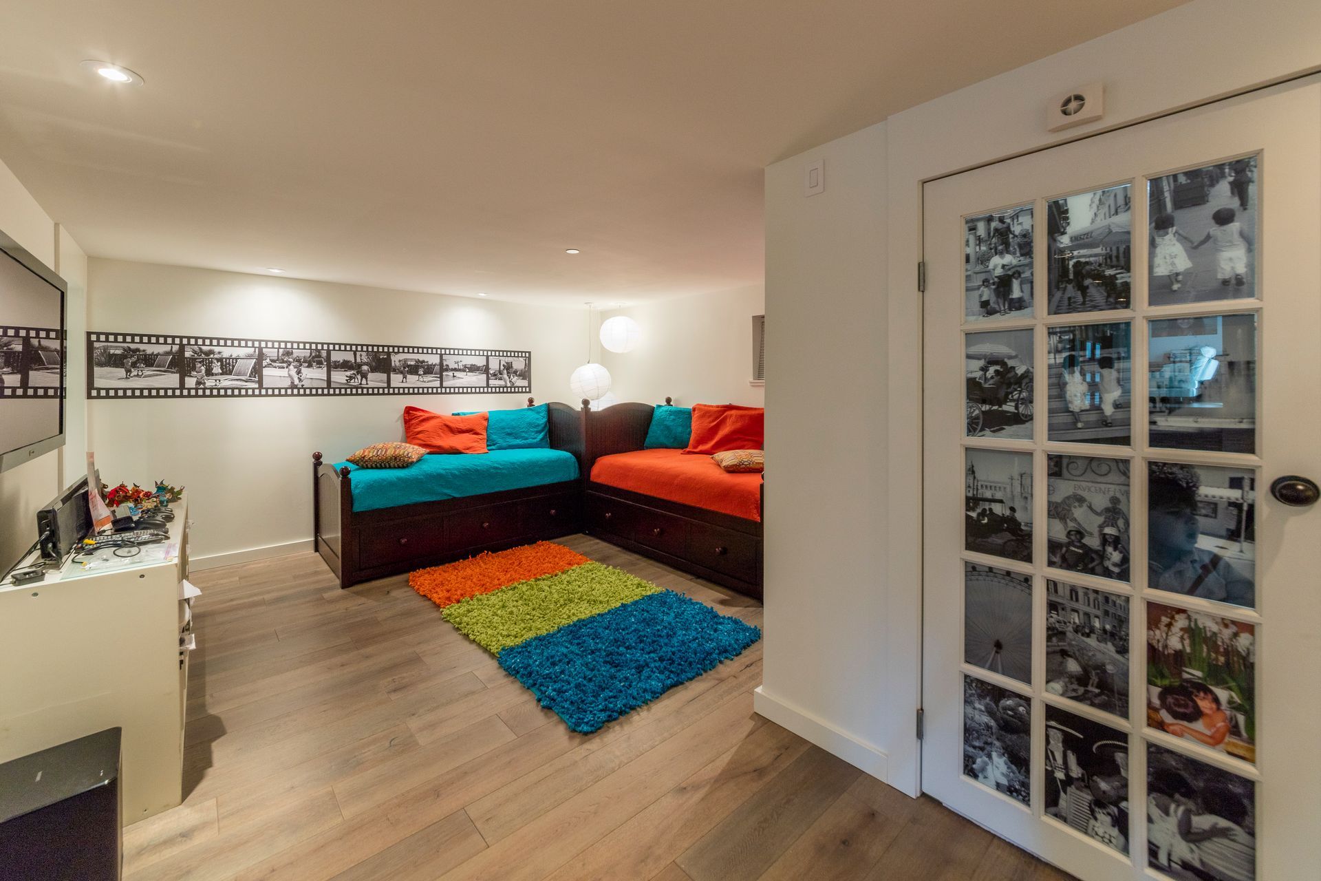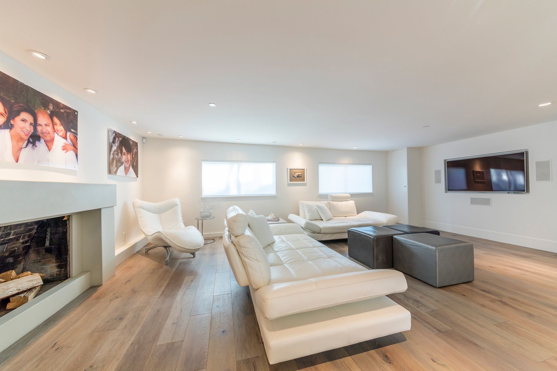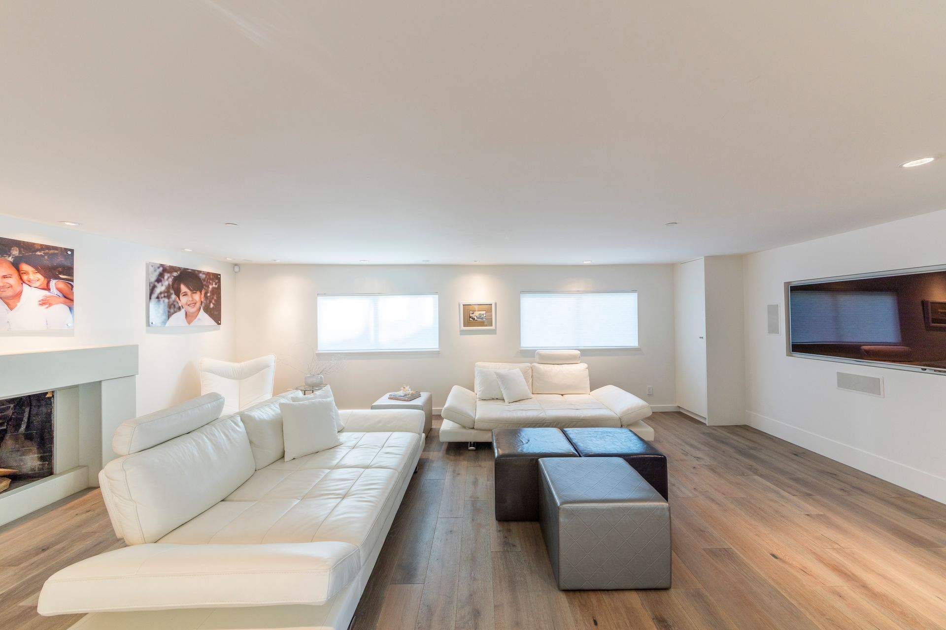 We built a large basement area for a sizable family and kid's playroom. Next, we designed this home to live in during summer with a large 750 sq ft deck and multi-sport court area facing the summer sun. Finally, we developed an entranceway to impress with a two-story 160 sq ft entry that we integrated into the home's existing structure.