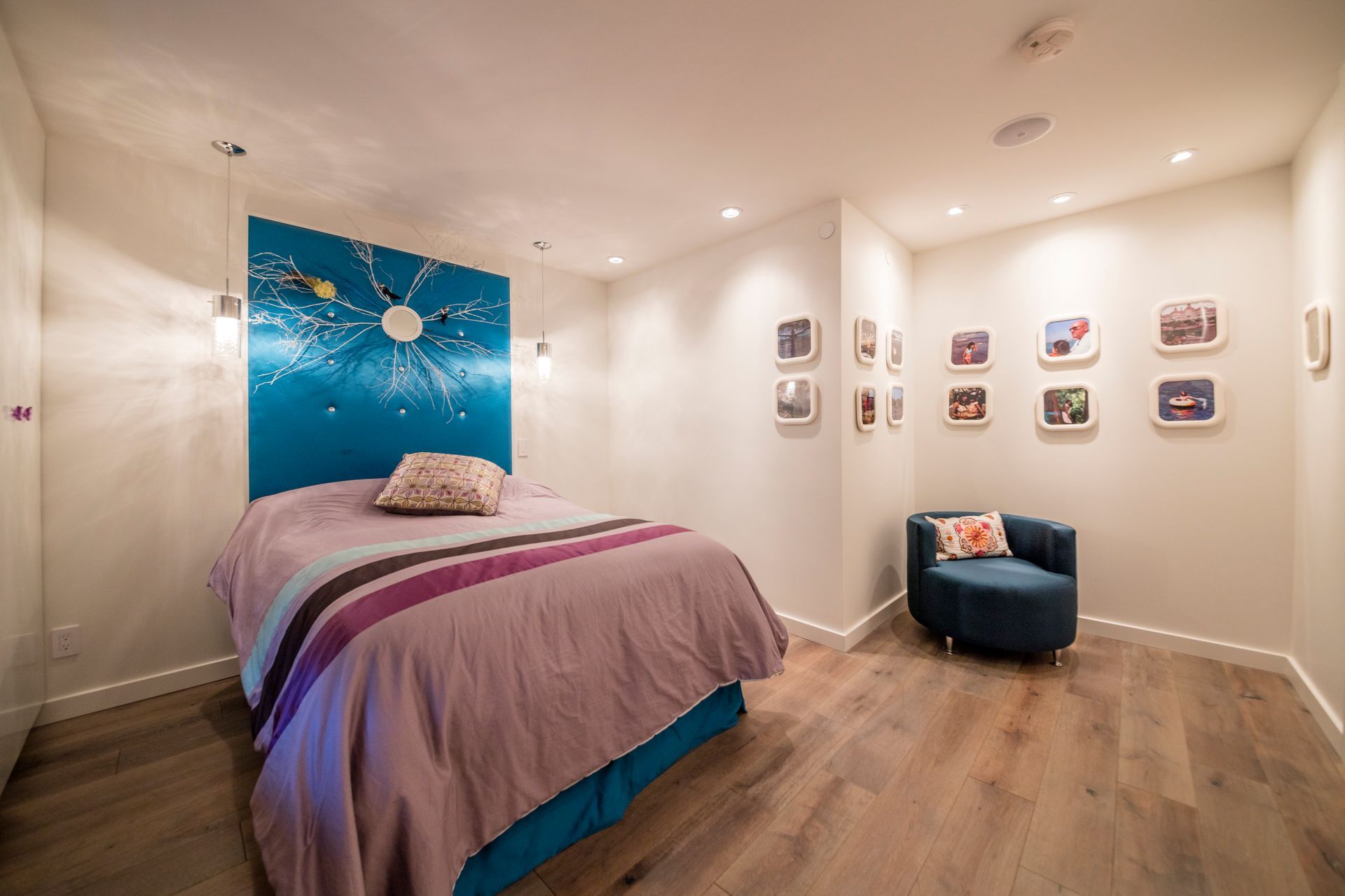 We found creative uses for underutilized areas of the home. For example, we converted an open crawl space into a wine cellar, built an open landing into a glass-enclosed office, and added extra square footage to enlarge the master ensuite.