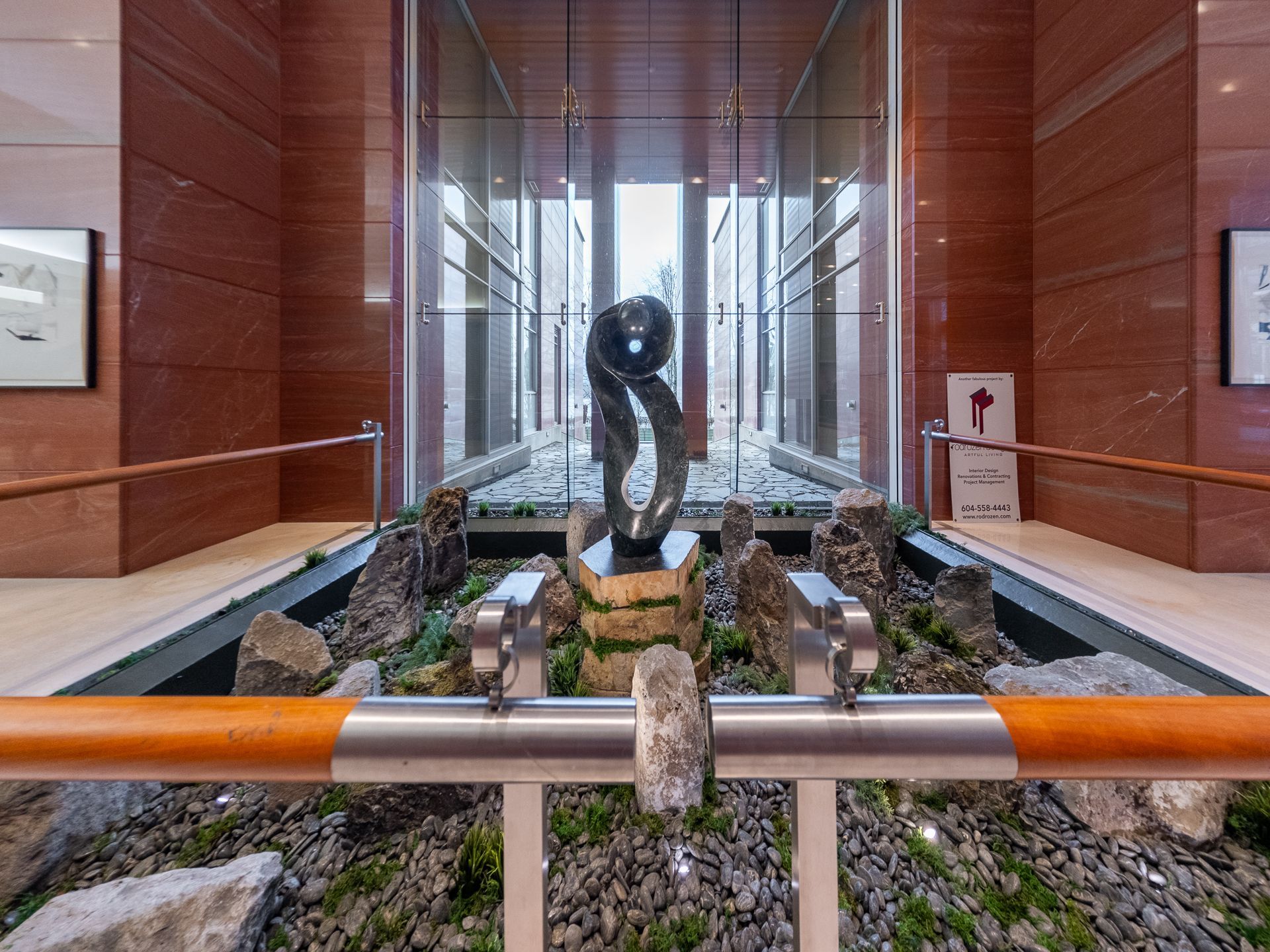 The Strata of One Harbour Green in Coal Harbour Vancouver approached us looking to replace a rather tired water feature in their lobby entranceway. So we devised a design that utilized the existing layout without having to rip everything up.