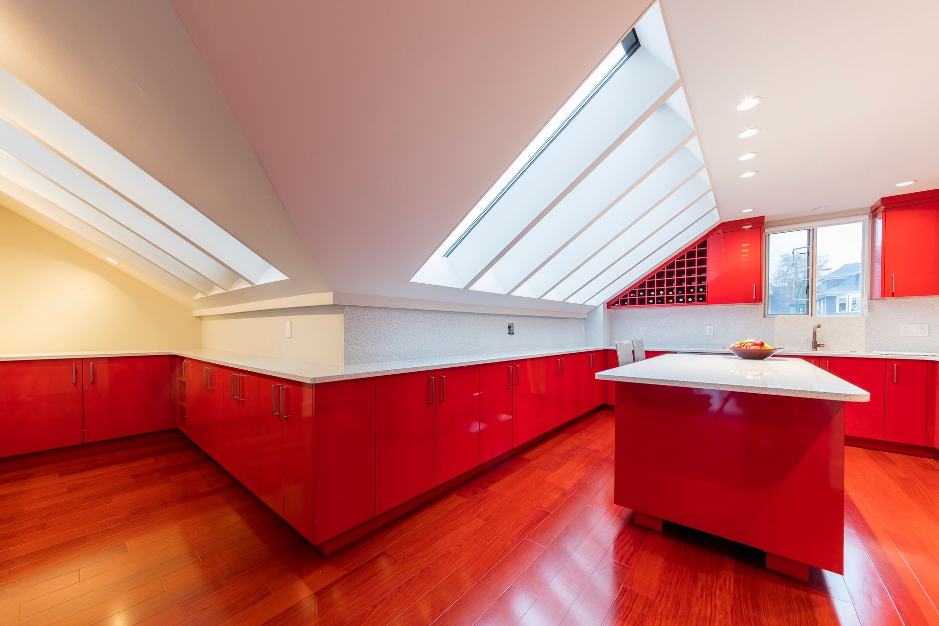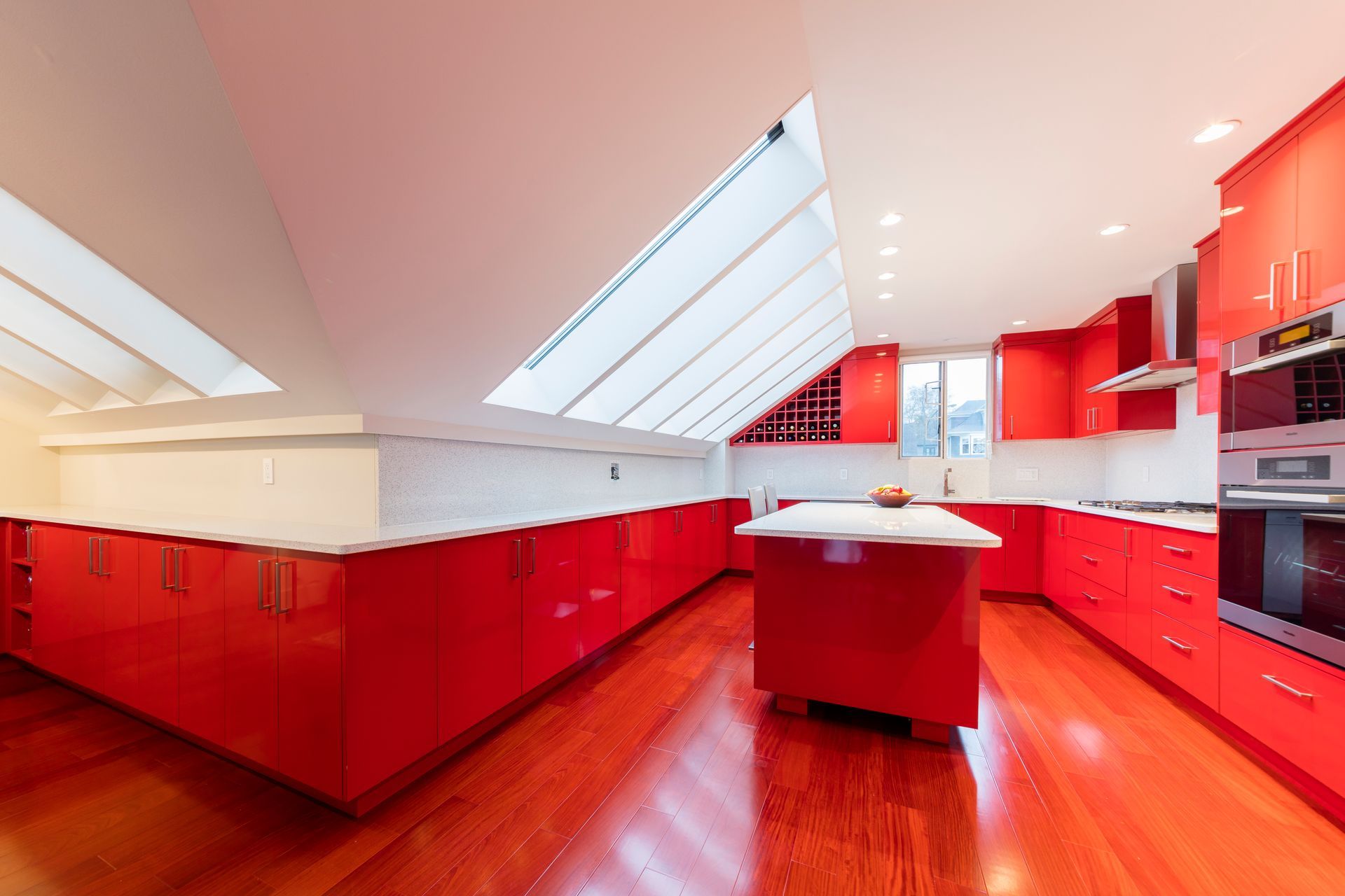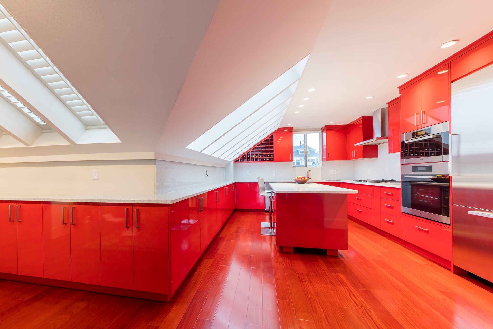 Be bold, be daring, be Rodrozen! Our homeowners went with our idea of daring to be a bit different with this spectacular kitchen renovation we designed and built in Kitsilano. The vivid red of this kitchen makes this a show-stopper for anyone walking in. But not to be overdone, we contrasted with keeping the colours balanced with a beautiful Cambria quartz countertop that keeps the red contained perfectly for this interior design theme.