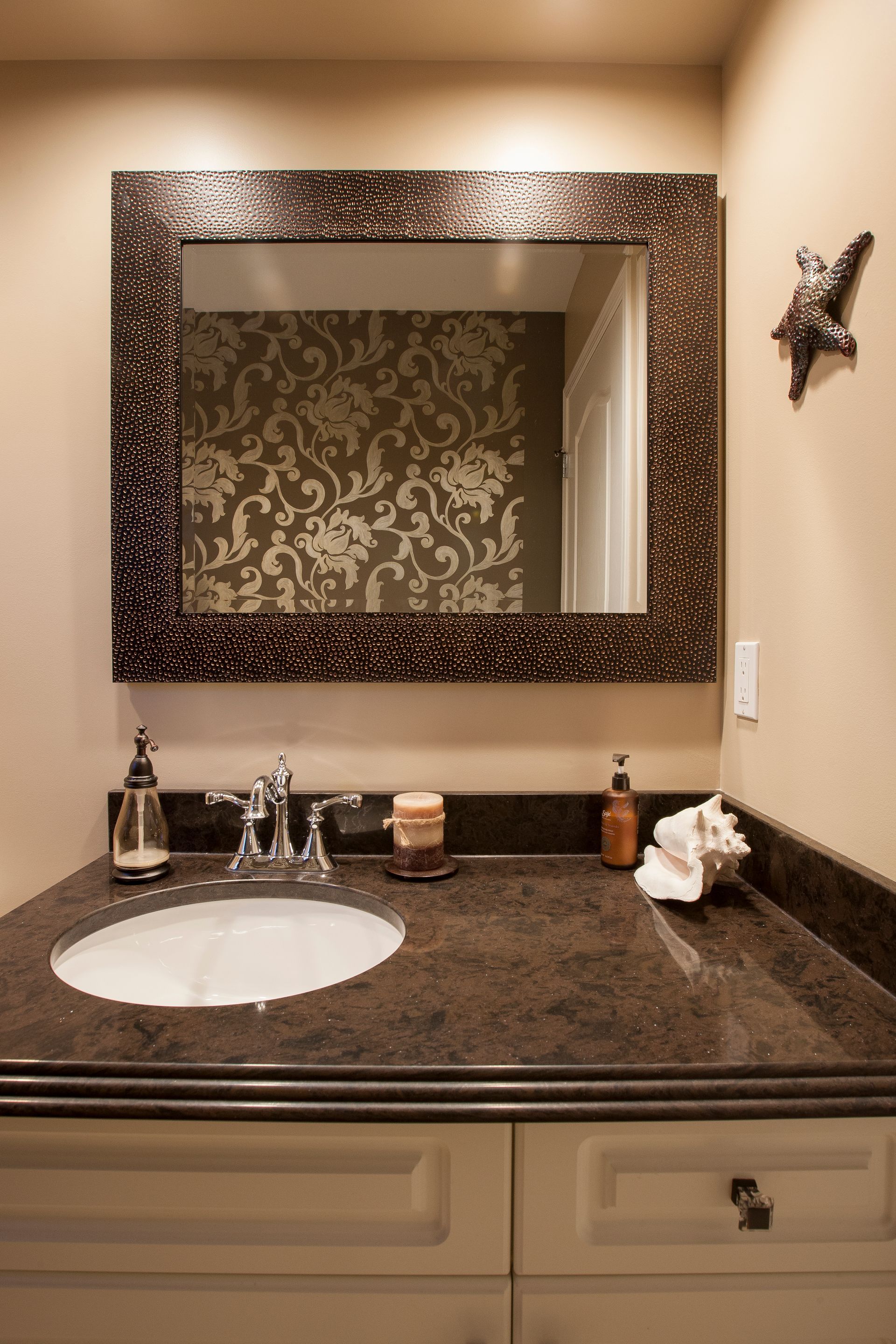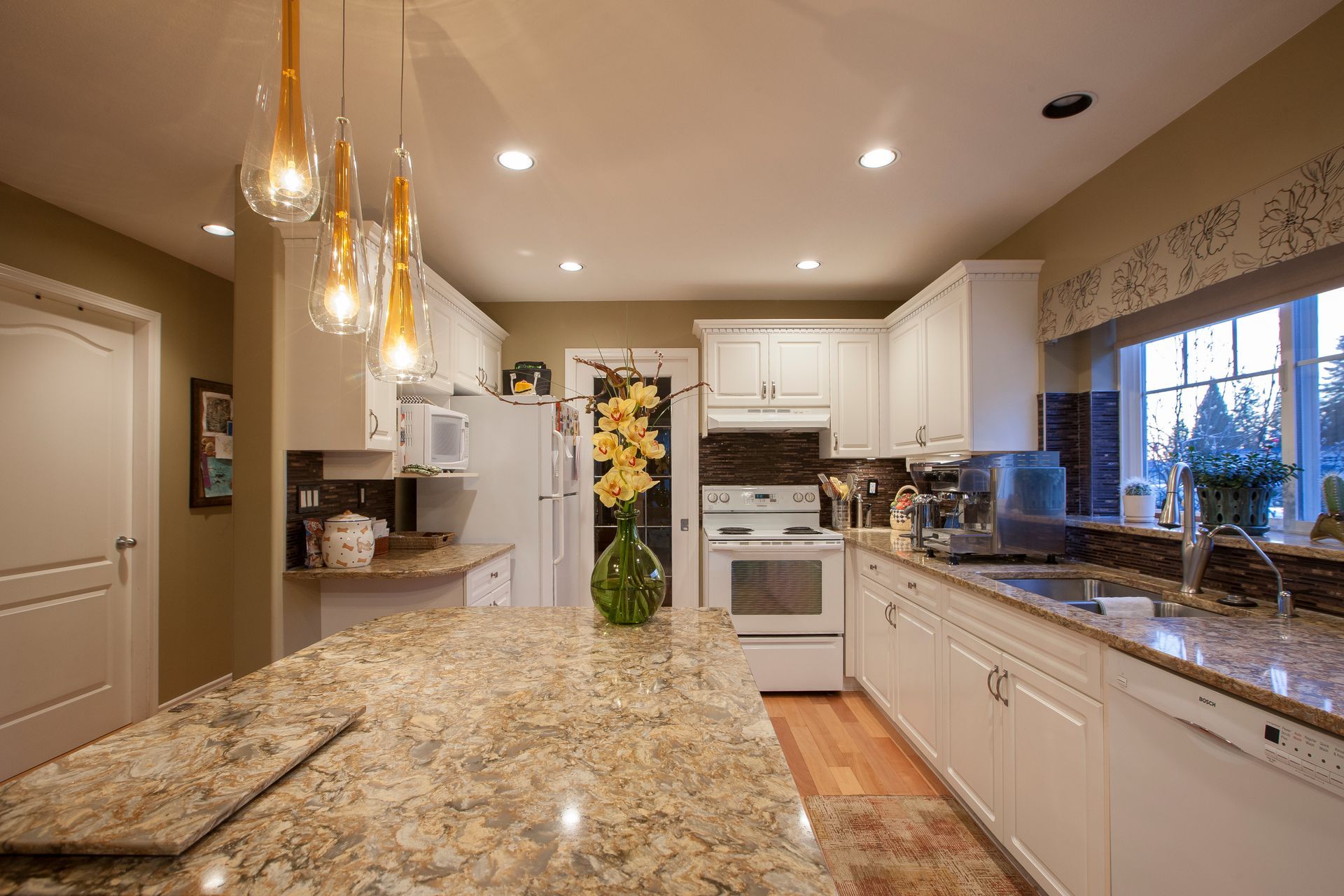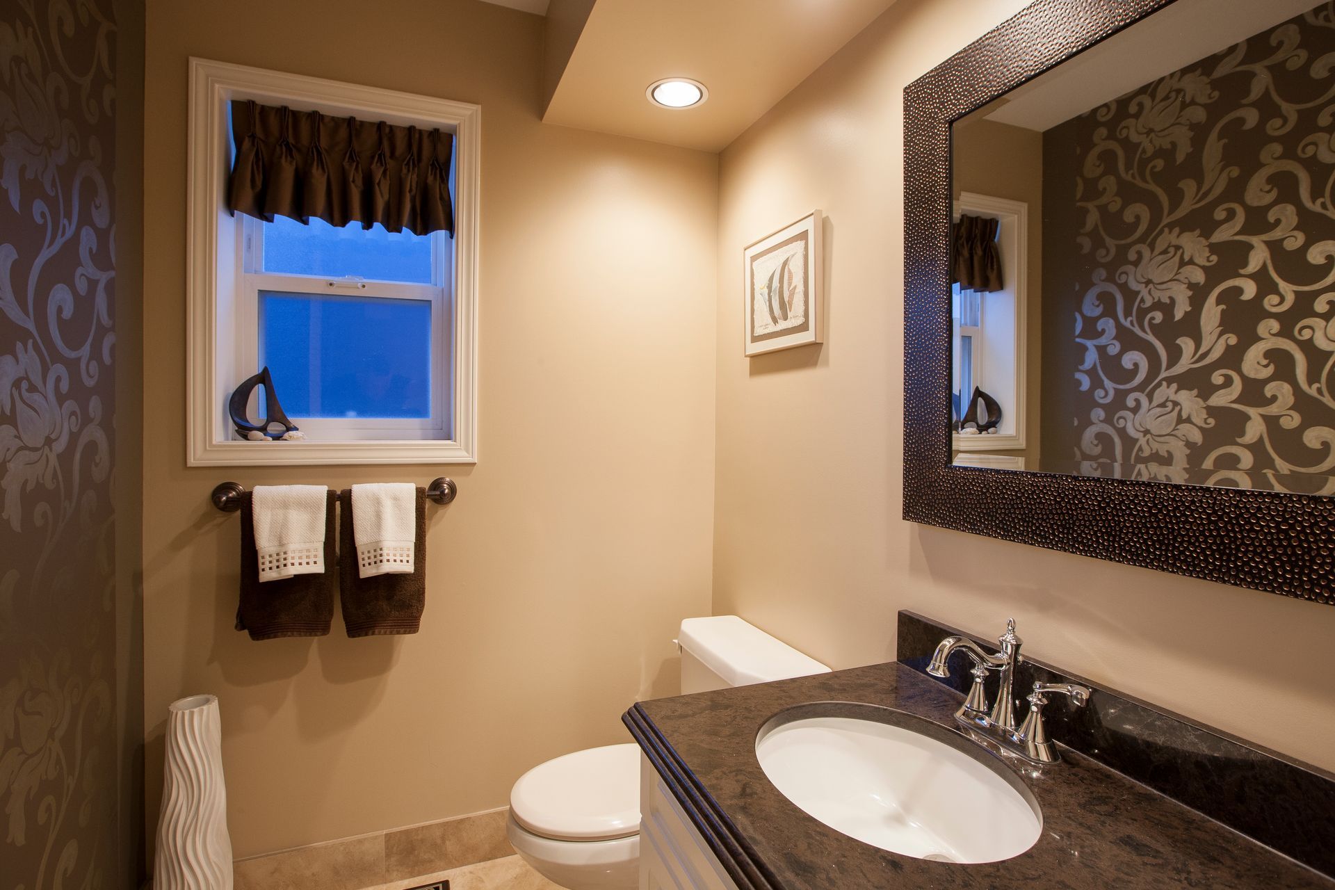 It's a game of two halves with this townhouse renovation in Lynn Valley in North Vancouver. A half - a kitchen renovation. The other - a bathroom. The striking feature of the bathroom is the triangular mirror, which makes a statement. On the other hand, the kitchen completes the central part of this home with a classic style that doesn't take it so far as to feel old.