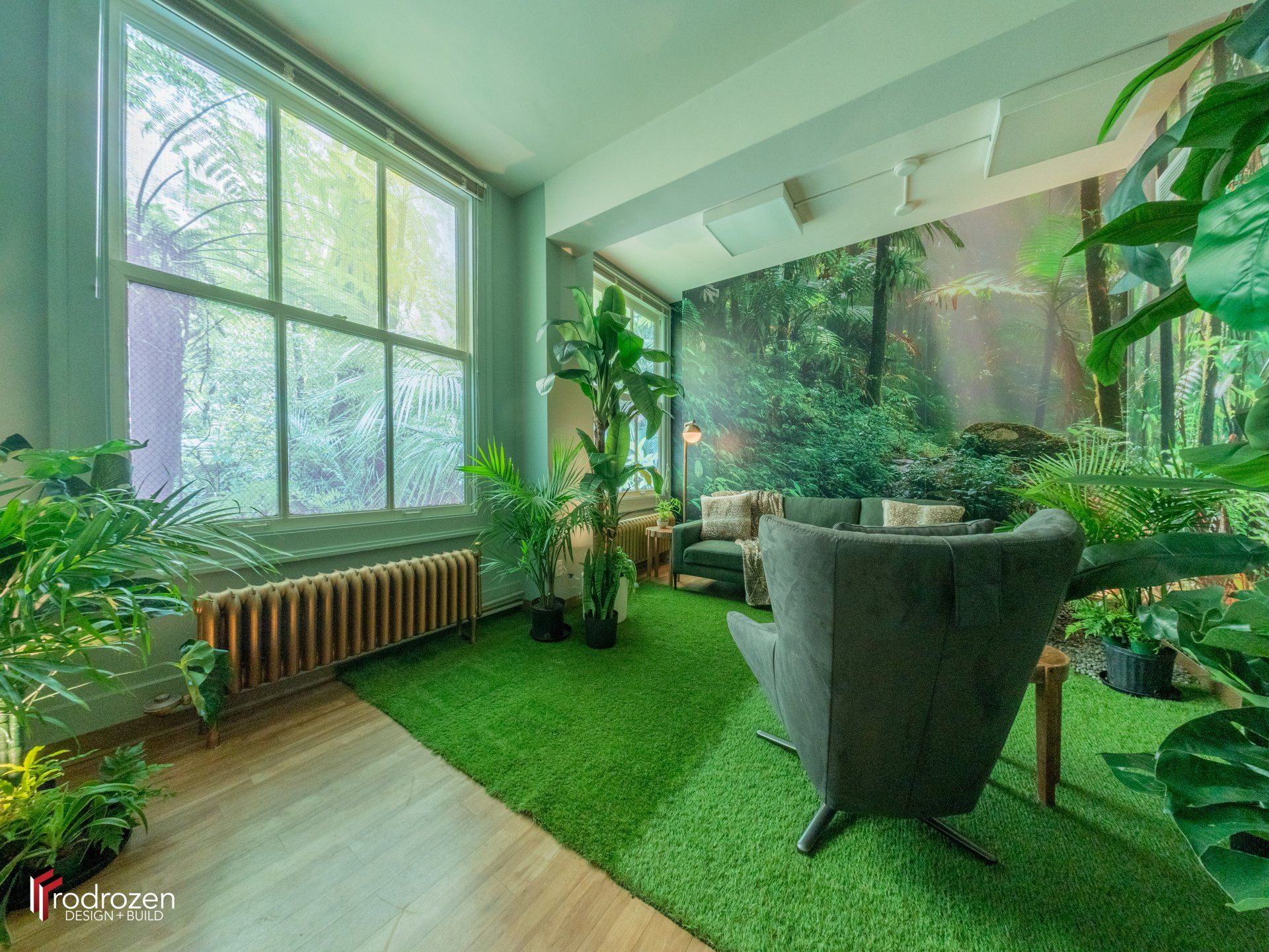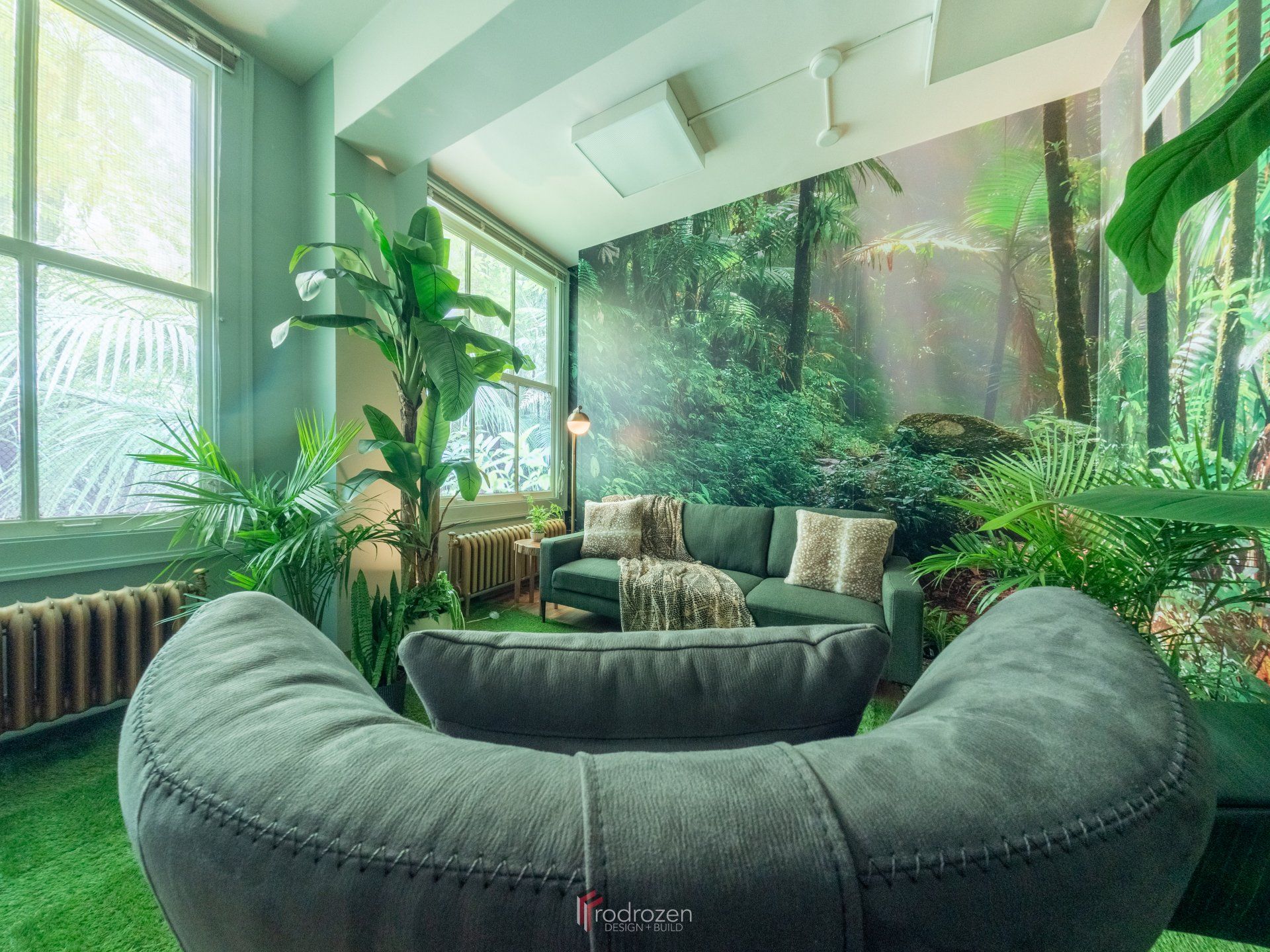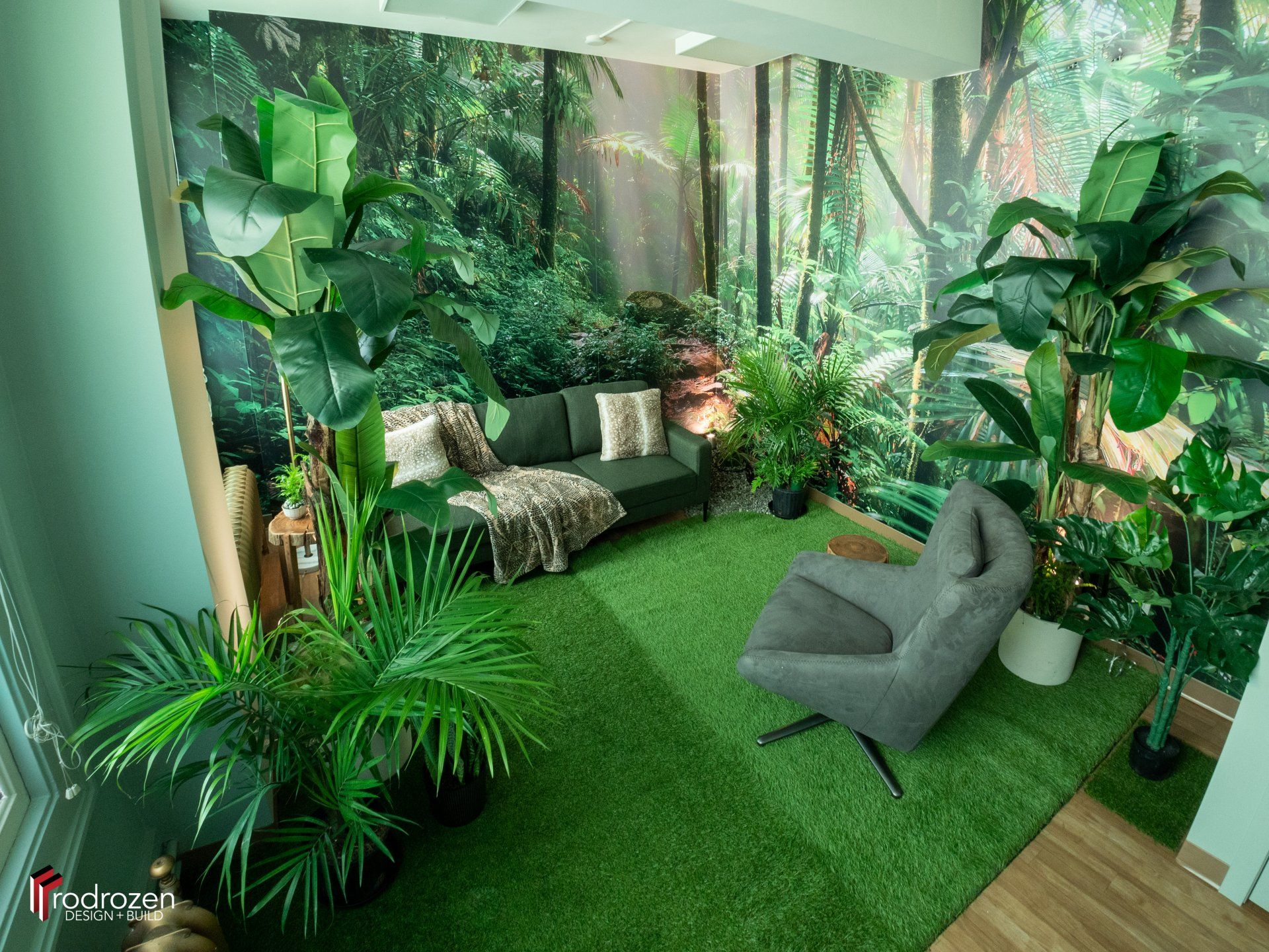 Our lead designer, Derick, took inspiration from around the world to create a desert-themed room, a beach relaxation room and our favourite, a jungle themed room.